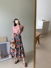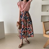 カラフルな色合いの花柄がおしゃれなロング丈スカートです。