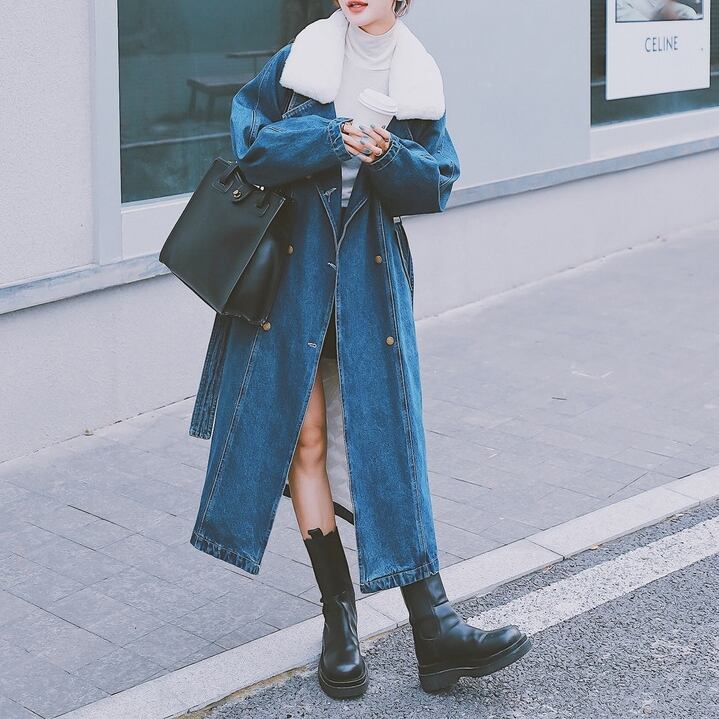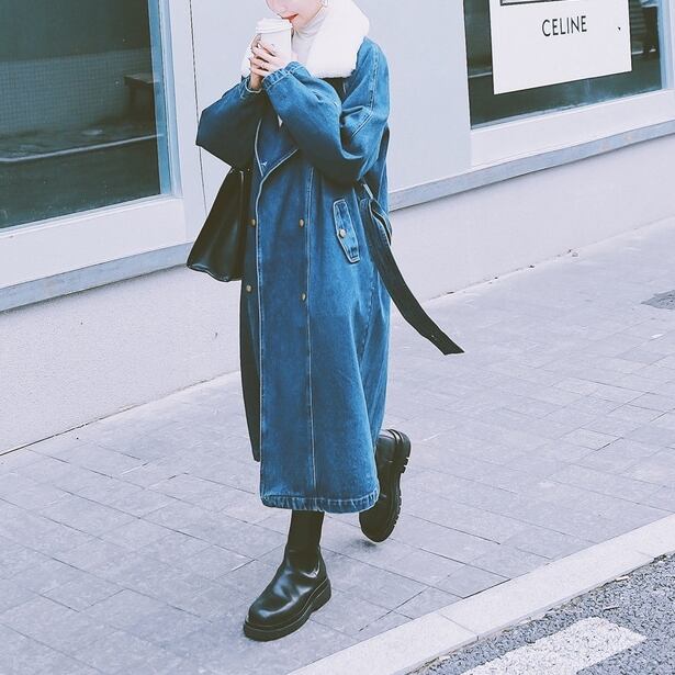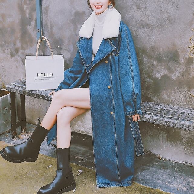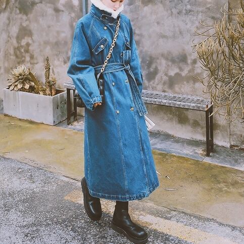 コート アウター ロング モノトーン ハイネック デニム ボア フェイクファー ベルト付き ウエストマーク スタンドカラー チェスターコート ガウンコート ミディアム丈 袖あり 長袖 ポケット付き アウター 羽織り 大人可愛い きれいめ シンプル カジュアル おしゃれ レトロ こなれ感 エレガント 無地 春 秋 冬 10代 20代 30代 40代 レディース オフィス OL 通勤 学生 通学 デート お出かけ 女子会 旅行 着回し 普段使い 韓国系 オルチャン コーデ スタイル モテ 体型カバー デニム