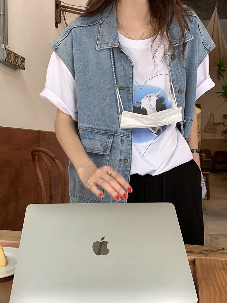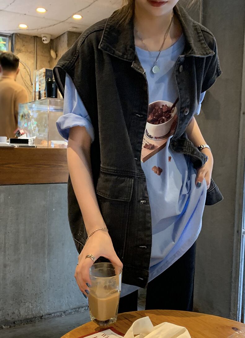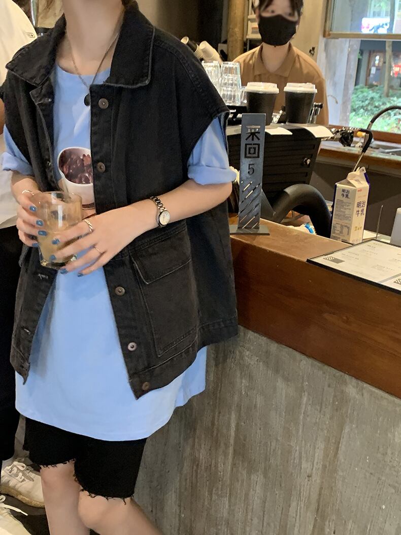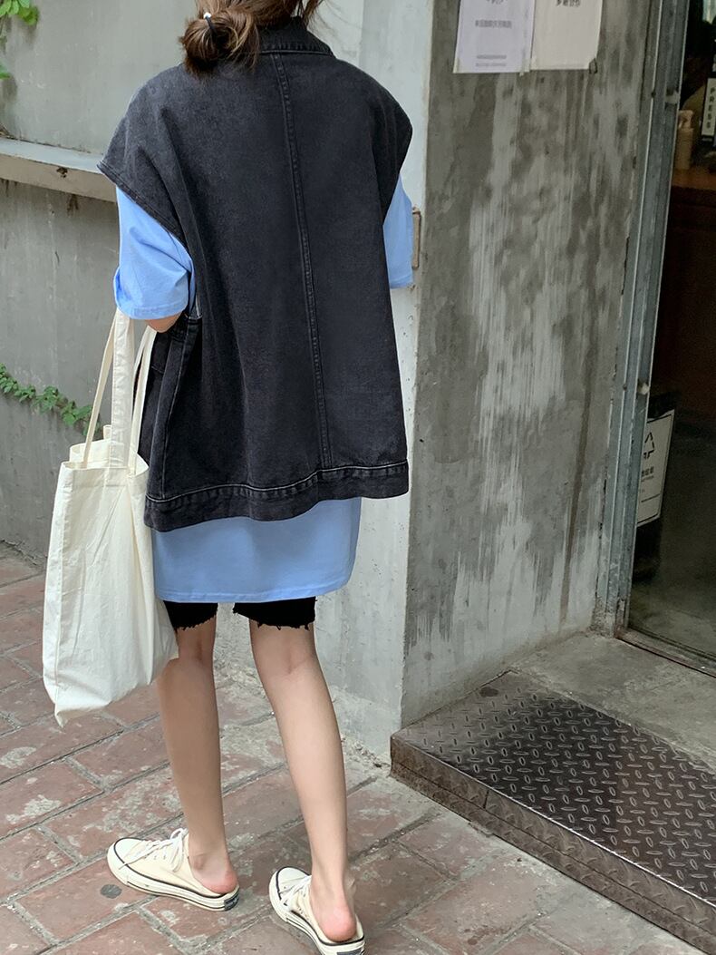 トップス ジレ ベスト 袖なし Vネック 前開き デニム ビッグシルエット オーバーサイズ かわいい 大人可愛い きれいめ シンプル カジュアル 大人 おしゃれ お洒落 無地 春 夏 秋 10代 20代 30代 40代 レディース オフィス OL 通勤 学生 通学 お出かけ お泊まり 休日 着回し 普段使い コーデ ブルー グレー
