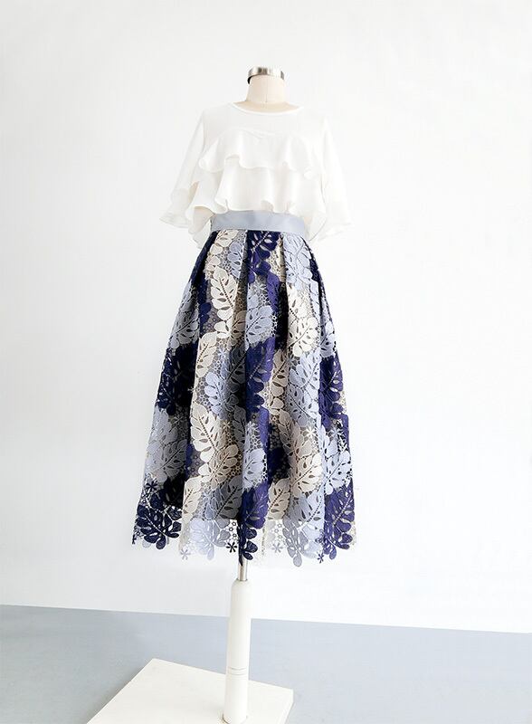 ブルーとホワイトの色使いがさわやかなフレアスカートです。