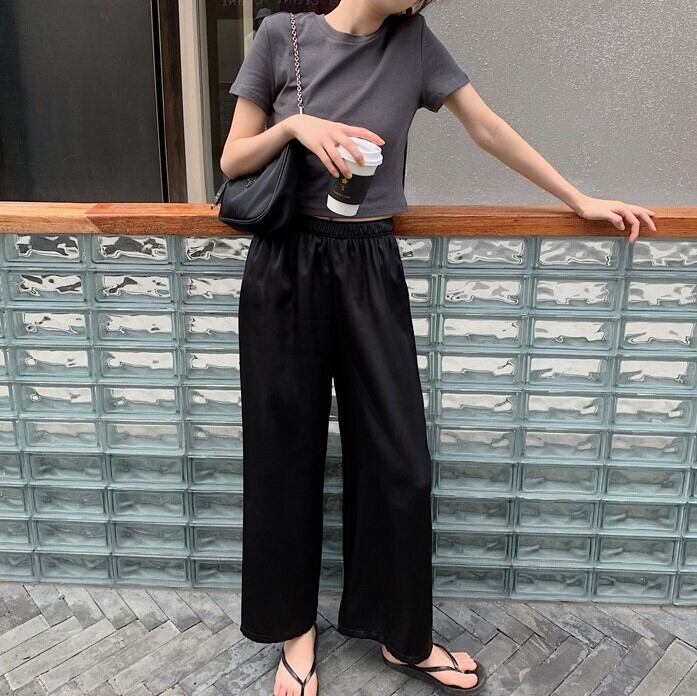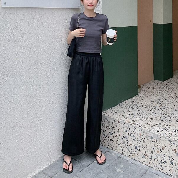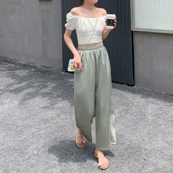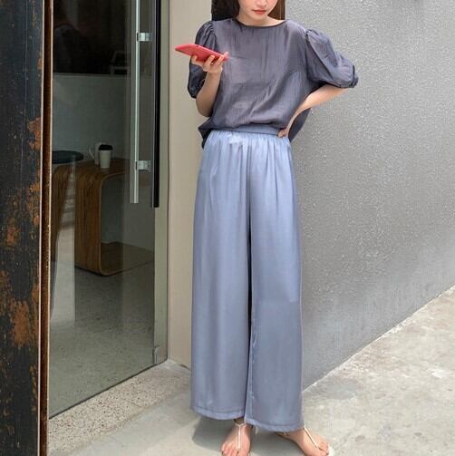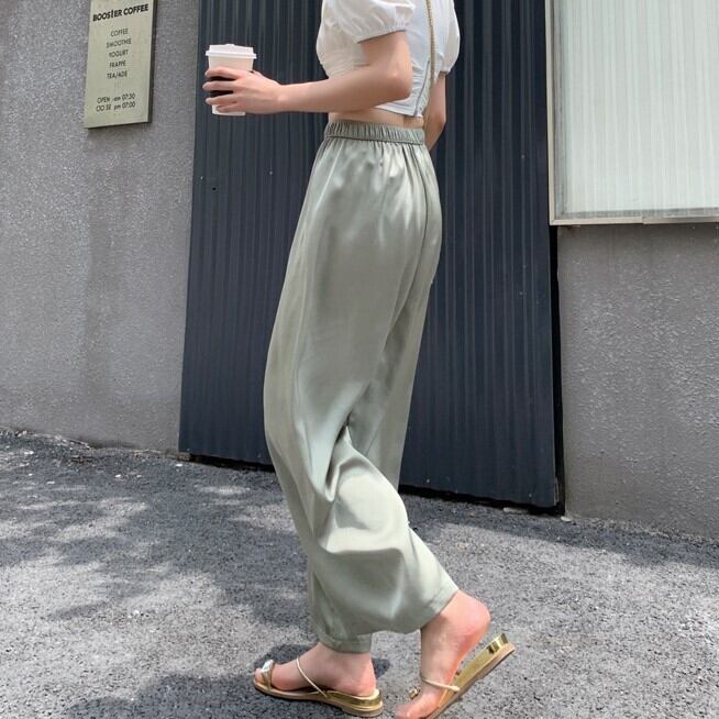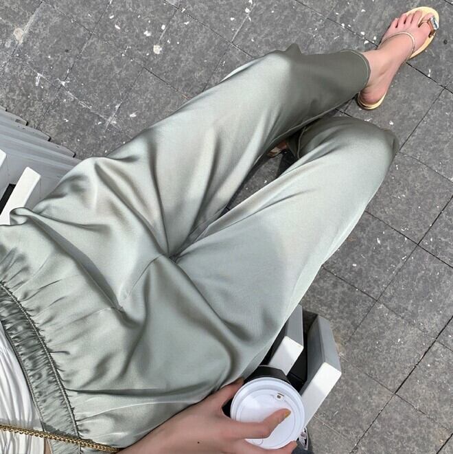 ボトムス サテン パンツ ロング丈 ハイウエスト ワイドレッグ 艶感 高見え ストレート かわいい 大人可愛い きれいめ シンプル カジュアル 大人 上品 おしゃれ お洒落 かっこいい 大人可愛い 大人女子 こなれ感 ラフ ラブリー キュート ガーリー ルーズ モード系 10代 20代 30代 40代 レディース デート お出かけ 着回し 普段使い 重ね着 韓国系 オルチャン ファッション コーデ 楽ちん 体系カバー 激安 送料無料 流行 インスタ映え ホワイト 白 ブルー 青 ブラック 黒 グリーン 緑
