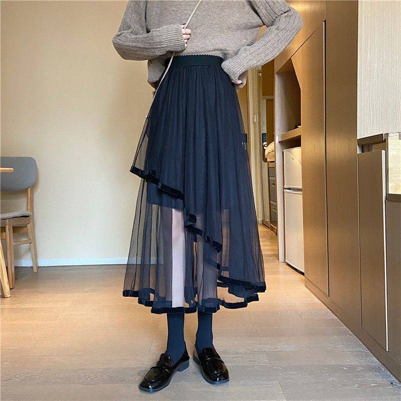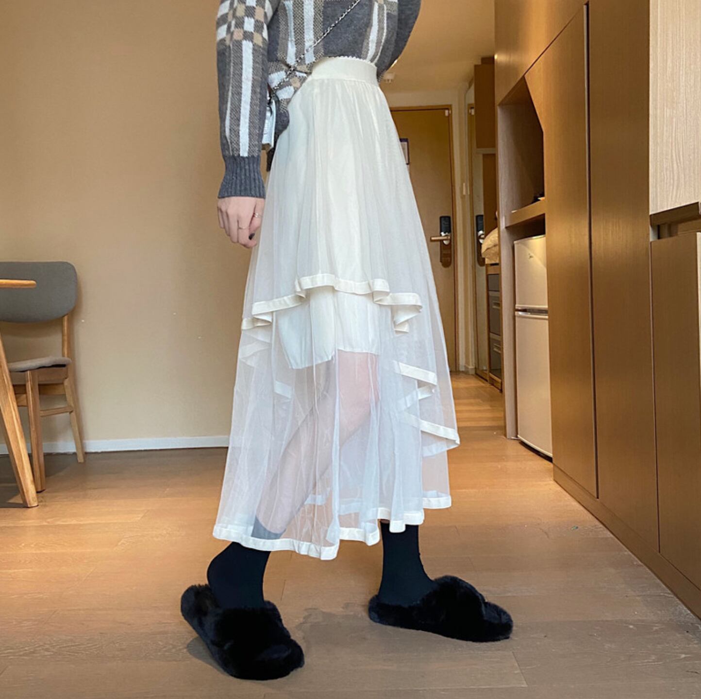 ボトムス ボトム おすすめ おしゃれ お洒落 激安 安い 送料無料 プチプラ スカート ロング スカート フレア スカート チュール スカート ボリューム スカート ハイ ウエスト Aライン シースルー ポリエステル 美脚 ウエスト ゴム 動きやすい 韓国 流行り かわいい 可愛い きれいめ 春 スプリング 夏 サマー カジュアル フォーマル 結婚式 秋 レディース 女性用 30代 20代 フリーサイズ 黒 ブラック ベージュ オフホワイト 大人カラー モノトーン 春カラー