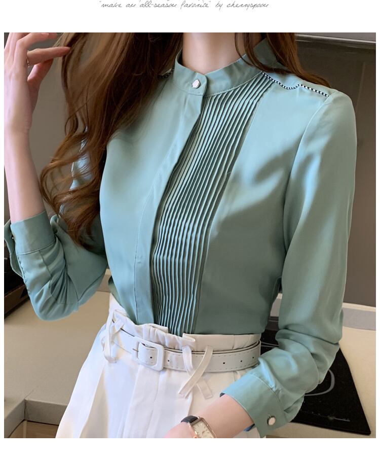 トップス ブラウス カットソー 袖あり 長袖 プリーツ 切り替えデザイン サテン かわいい 大人可愛い きれいめ シンプル 大人 上品 おしゃれ 大人可愛い 大人女子 無地 春 夏 秋 10代 20代 30代 レディース オフィス ビジネス OL 通勤 S M L XL 2XL 小さいサイズ 大きいサイズ 白 ホワイト ブルー 緑 グリーン