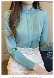高見えファッション間違いなしのサテン生地オフィス向けトップス