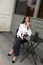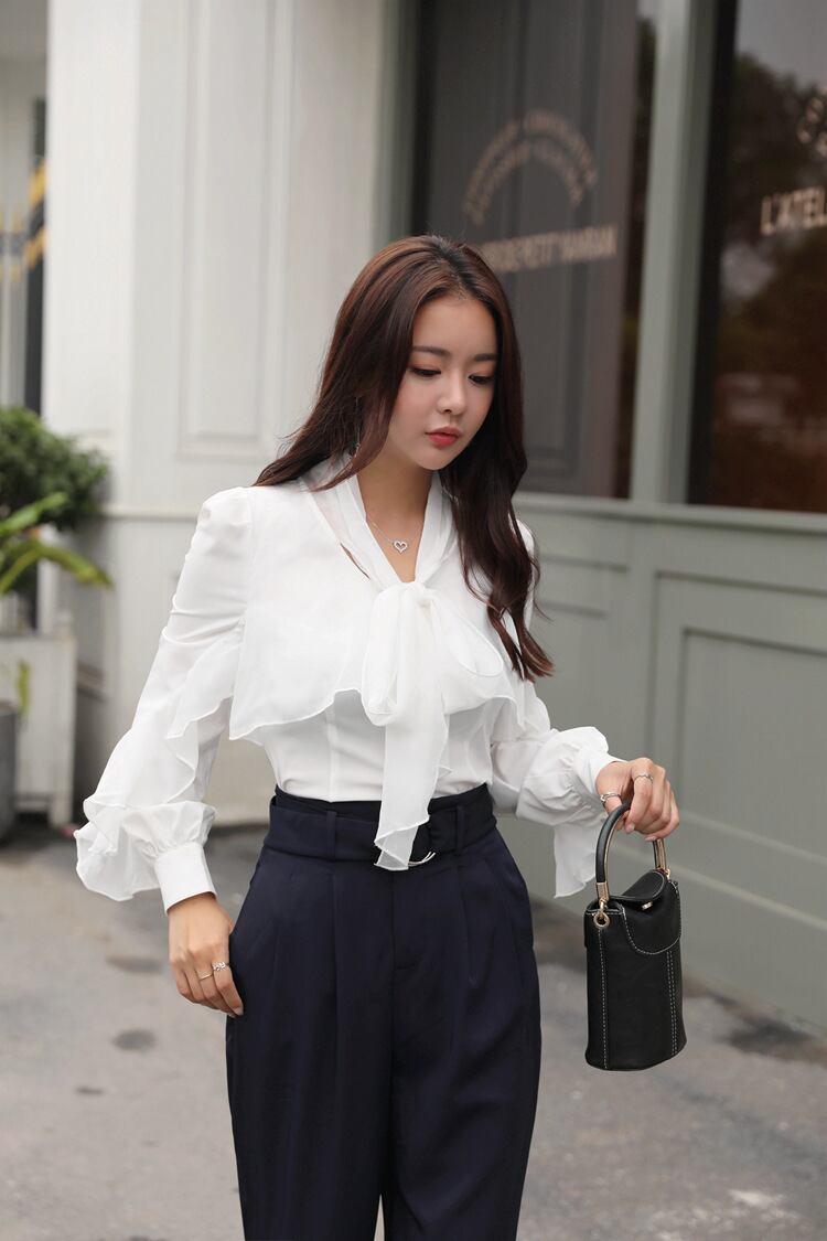 袖と胸元のフリルデザインがガーリーでかわいいブラウス◎