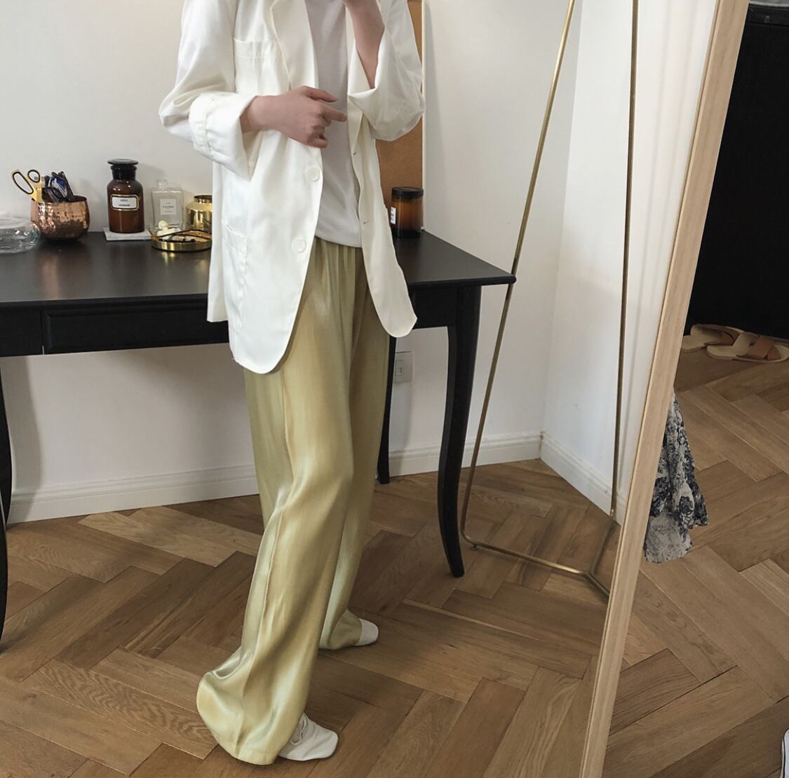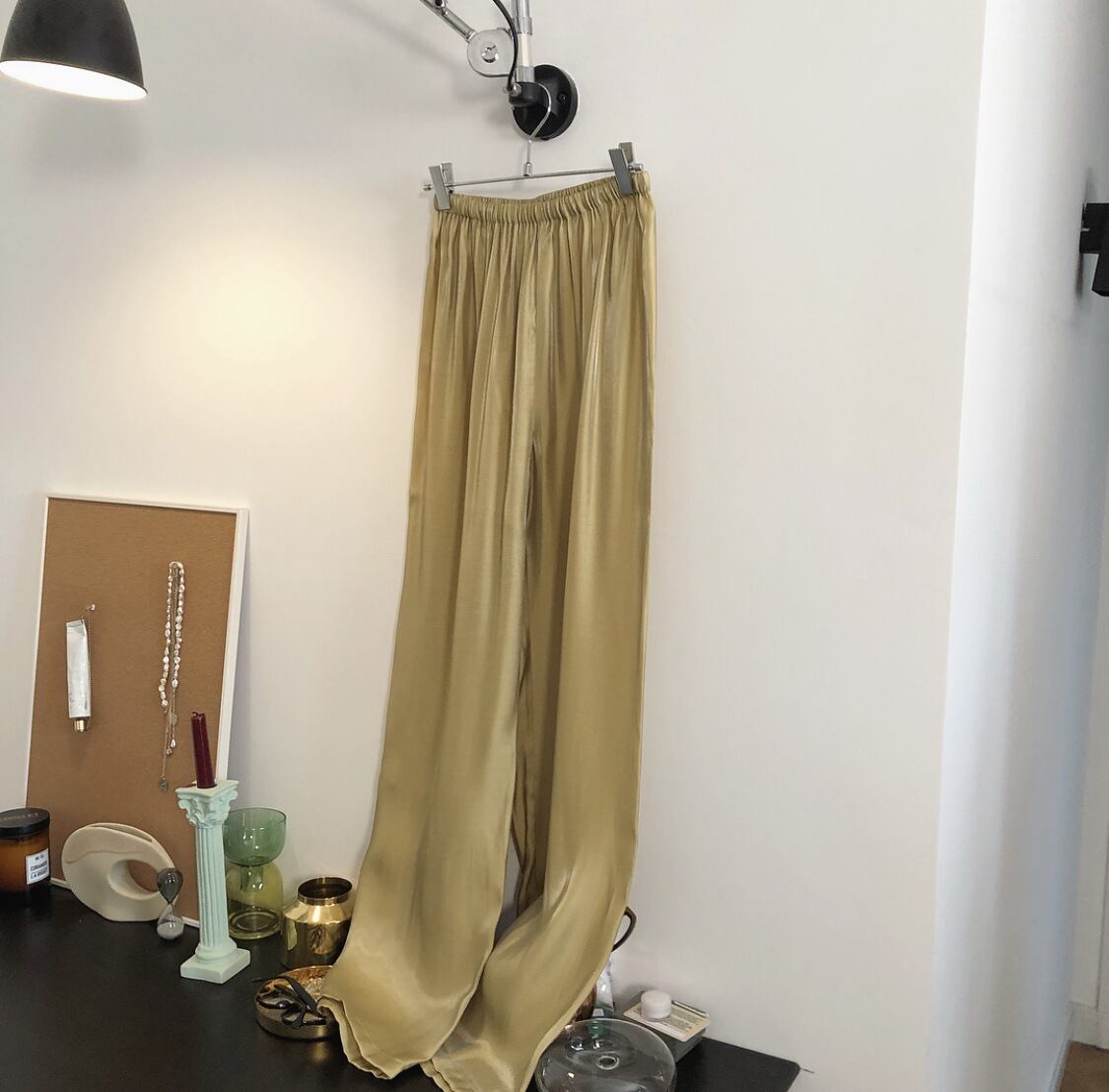 ボトムス ボトム おすすめ おしゃれ お洒落 激安 安い 送料無料 プチプラ パンツ ワイド パンツ ハイ ウエスト テロテロ ゆったり 太め ぶかぶか サテン ポリエステル ウエスト ゴム 動きやすい 韓国 流行り かわいい 可愛い 涼しい リラックス 楽ちん 春 スプリング 夏 サマー ストリート ルームウェア カジュアル レディース 女性用 30代 20代 フリーサイズ 大きめ 緑 グリーン ベージュ オフホワイト パステルカラー 大人カラー 春カラー