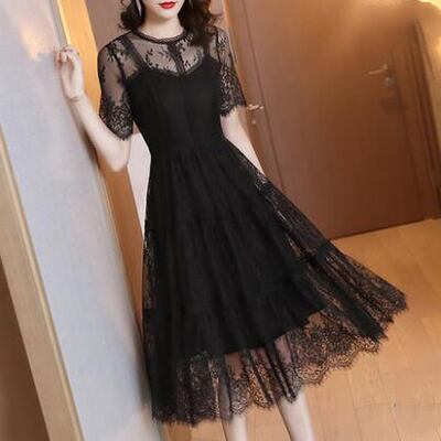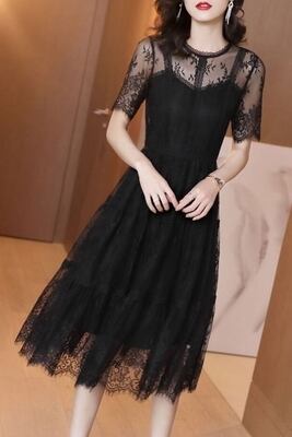 ドレス おすすめ おしゃれ お洒落 激安 安い 送料無料 プチプラ パーティードレス お呼ばれ ドレス カラー ドレス レース ドレス ナイトドレス ロングドレス シースルー ドレス セレブ ドレス 長袖 Aライン 韓国 フォーマル 20代 30代 S M L XL 2XL 黒 ブラック 大人カラー モノトーン 綺麗め フェミニン 可愛い