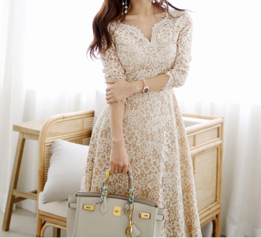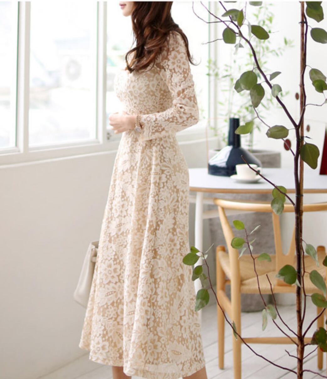ドレス おすすめ おしゃれ お洒落 激安 安い 送料無料 プチプラ パーティードレス お呼ばれ ドレス フォーマル ドレス ロングドレス レース ドレス 長袖 Vネック 膝丈 花柄 韓国 フォーマル 綺麗め 大人上品 フローラル フラワー シック 同窓会 発表会 20代 30代 S M L XL ベージュ オフホワイト パステルカラー くすみカラー 大人カラー 春カラー シンプル ナチュラル お出かけ