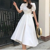 ドレス おすすめ おしゃれ お洒落 激安 安い 送料無料 プチプラ お呼ばれ ドレス カジュアル ドレス Aライン パフスリーブ ミニスカート 膝丈 ボリュームスリーブ ふんわり 韓国 フォーマル カジュアル 綺麗め 大人上品 同窓会 20代 30代 S M L 白 ホワイト 黒 ブラック 黄色 イエロー パステルカラー 大人カラー 春カラー フェミニン お出かけ