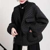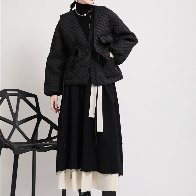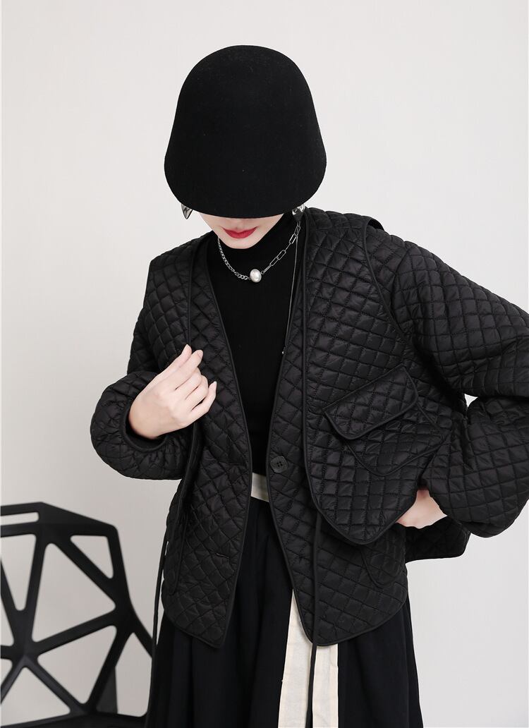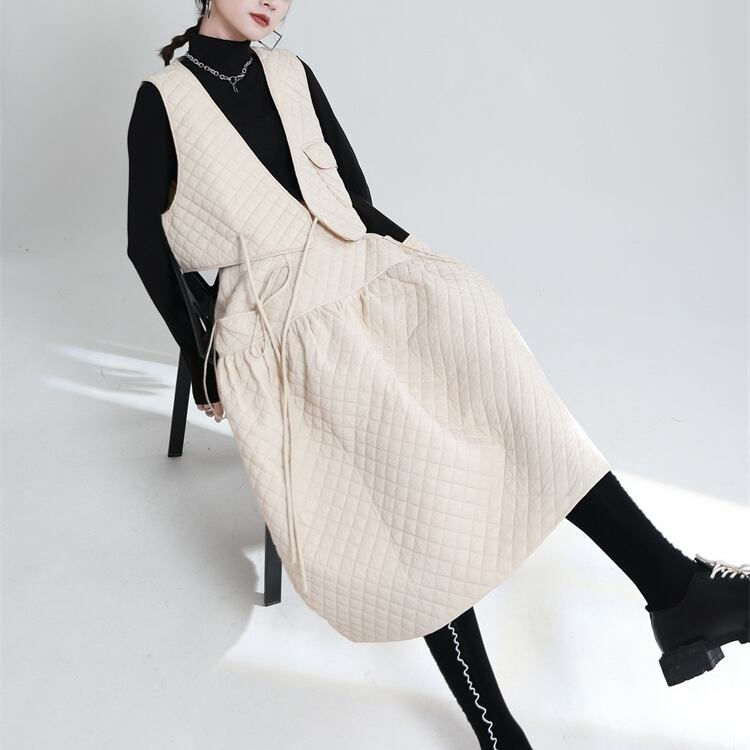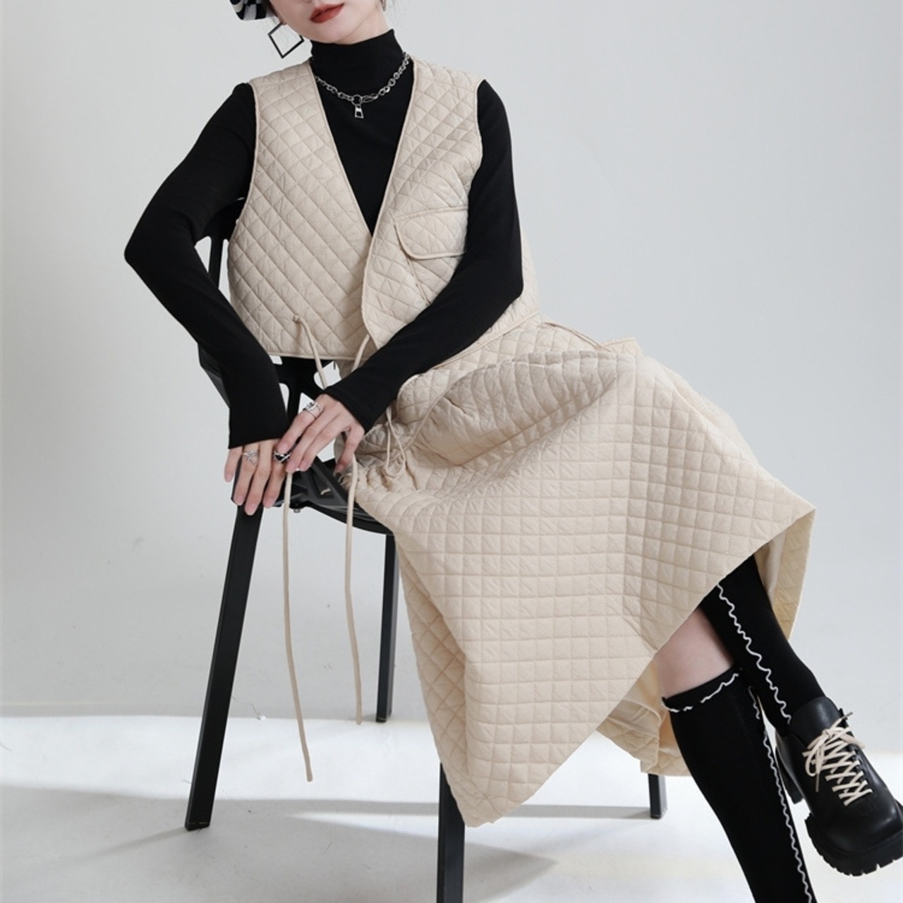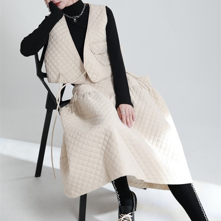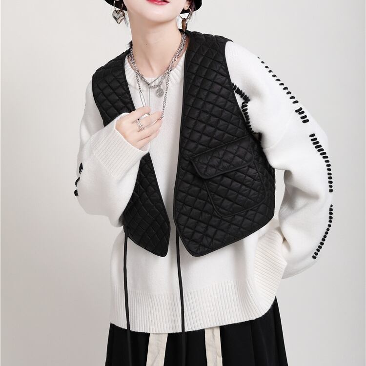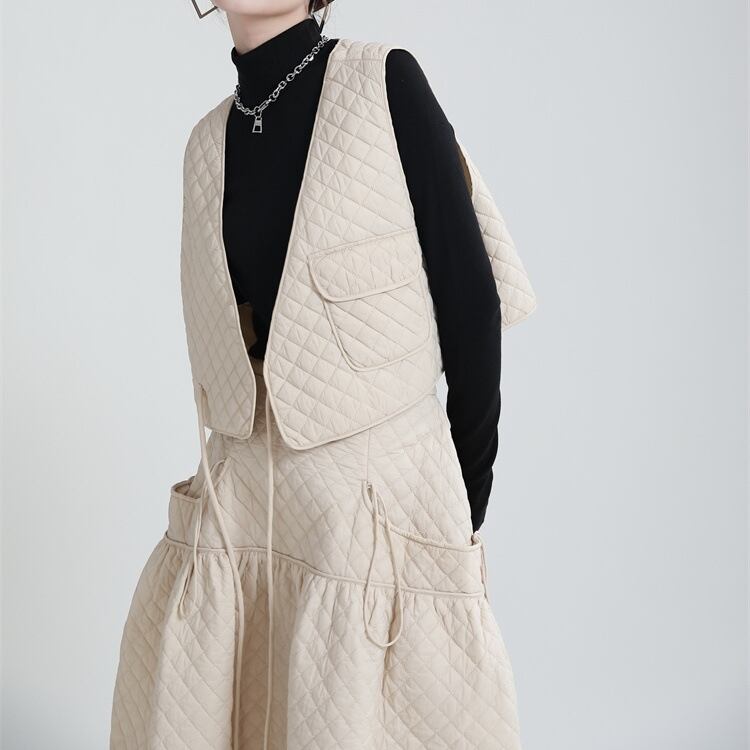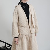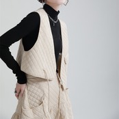 幾何学パターンのキルティングが可愛い中綿ベストです。