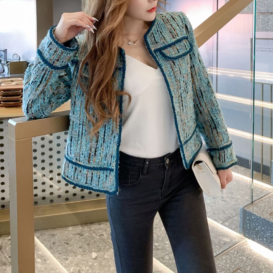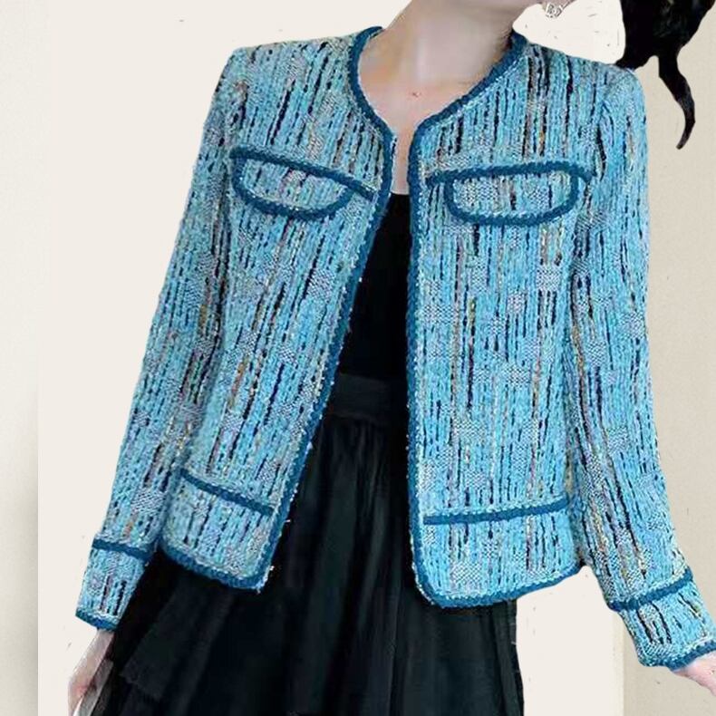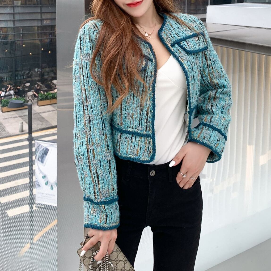 ジャケット レディース ノーカラージャケット ストライプ バイカラー パイピング ポケット装飾 バイカラー ツイード クルーネック ショート丈 パフスリーブ アウター ミディアム丈 オーバーサイズ 韓国風 軽い 軽量 フード付き 冬服 厚手 アウター 暖かい 大きいサイズ スリム 防寒 10代 20代 30代 40代 レディース オフィス OL 通勤 学生 通学 デート お出かけ 女子会 リゾート 旅行 着回し 普段使い 韓国系 ファッション コーデ スタイル モテ 体型カバー ブルー アプリコット