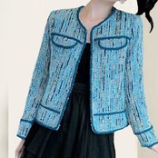 メタルやカラフルな起毛糸を織りこんだツイードがクラシカルなジャケットです。