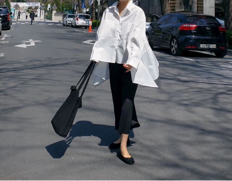 トップス シャツ 白シャツ 袖あり 長袖 襟付き ワイド 綿 きれいめ シンプル カジュアル 大人 上品 おしゃれ かっこいい 大人女子 ラフ メンズライク 無地 春 夏 秋 10代 20代 30代 40代 レディース オフィス ビジネス OL 通勤 普段使い 重ね着 韓国系 オルチャン ファッション S M L XL 白 ホワイト