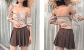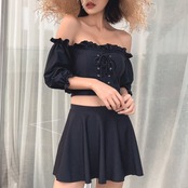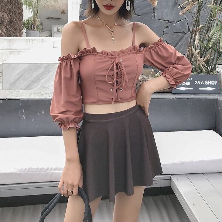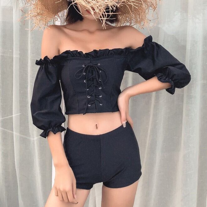 街中で着ていても違和感のないキュートなオフショルビキニ3点セット