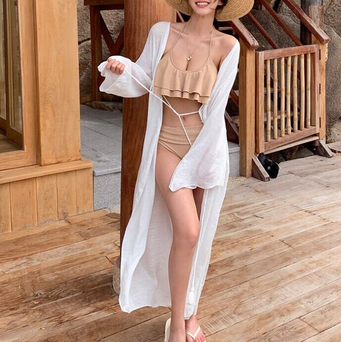 水着 ビキニ スイムウェア レディース 紐 フリル 盛れる ハイウエスト 上下セット 大人可愛い きれいめ セクシー カジュアル 華やか おしゃれ レトロ 主役級 存在感 ラブリー ガーリー 柄 小花柄 10代 20代 30代 海 ビーチ プール リゾート 着痩せ 韓国 M L XL ベージュ