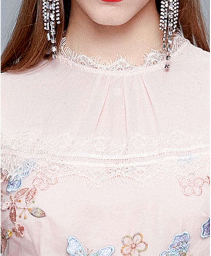 生地の透け感とレースのディテールがお洒落でフェミニンコーデにぴったりな一枚。