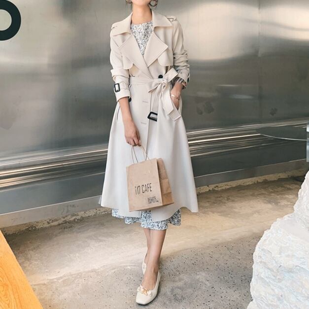 コート アウター ロング トレンチ スクエアバックル ベルト モノトーン ガウンコート ベルトマニッシュ ミディアム丈 袖あり 長袖 ポケット付き アウター 羽織り 大人可愛い きれいめ シンプル カジュアル おしゃれ レトロ こなれ感 ラフ エレガント 無地 春 秋 冬 10代 20代 30代 40代 レディース オフィス OL 通勤 学生 通学 デート お出かけ 女子会 リゾート 旅行 着回し 普段使い 韓国系 オルチャン ファッション コーデ スタイル モテ 体型カバー カーキ ブラック