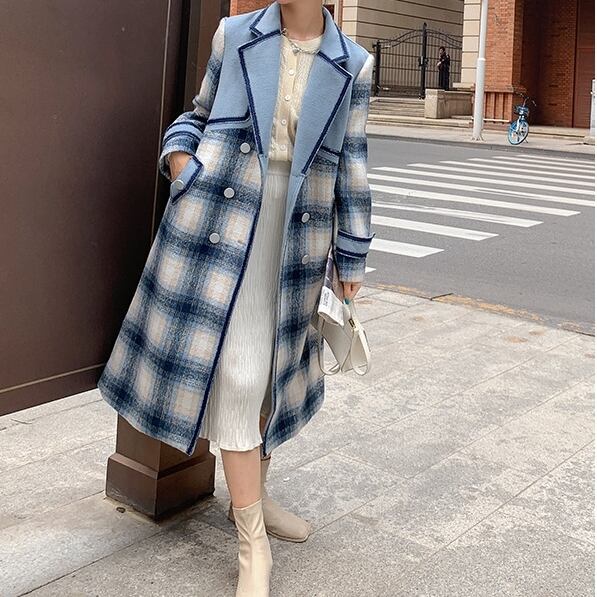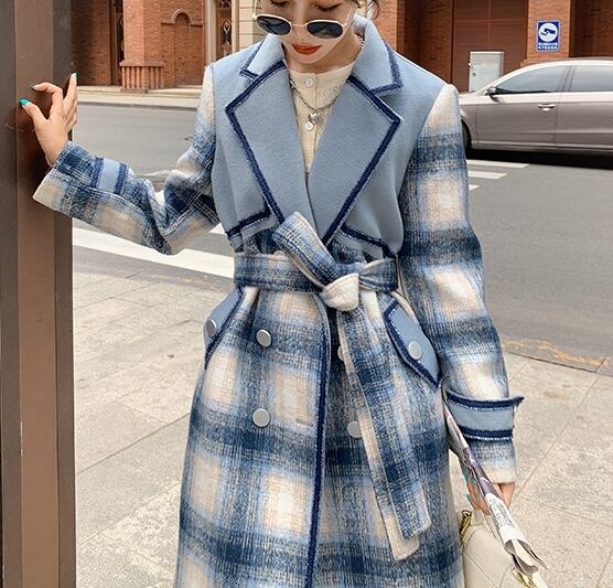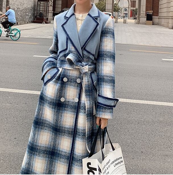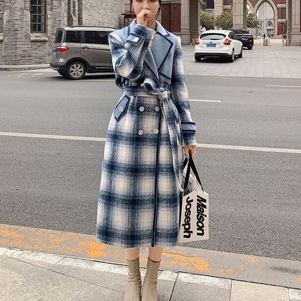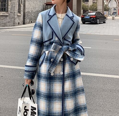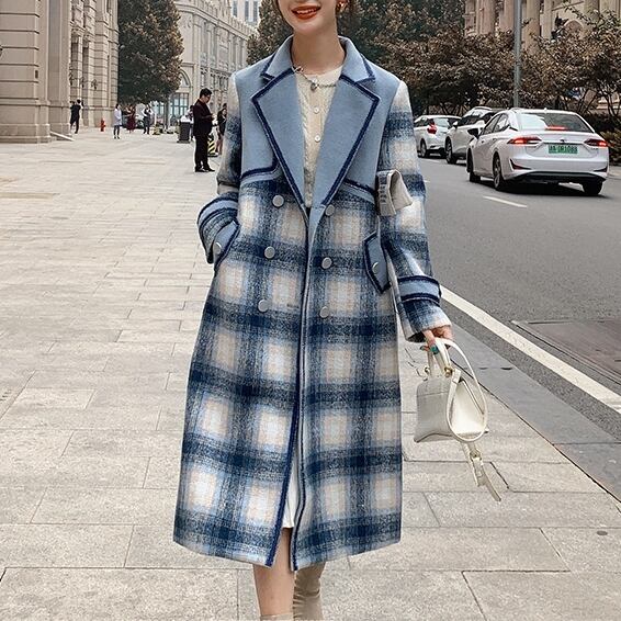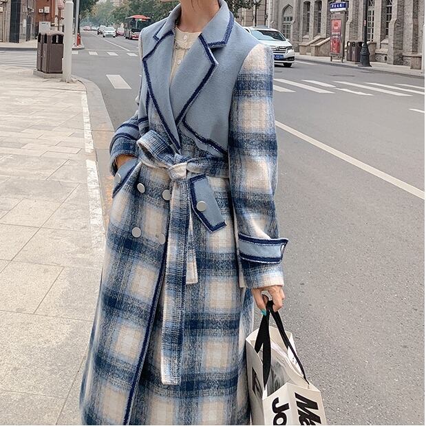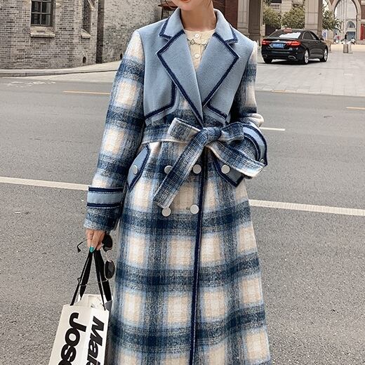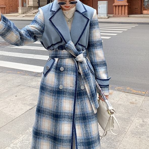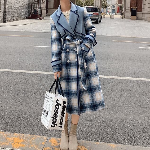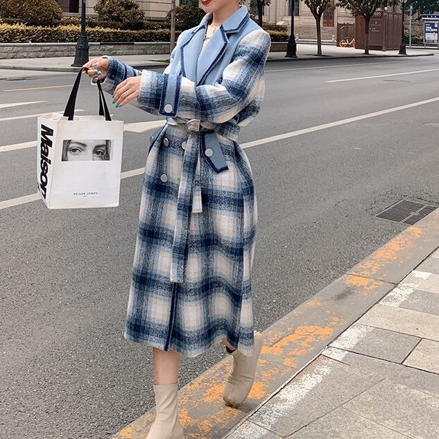 レトロな大柄のチェックパターンのロングガウンコートです。