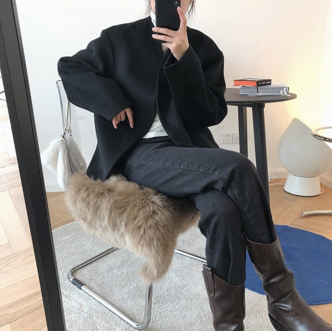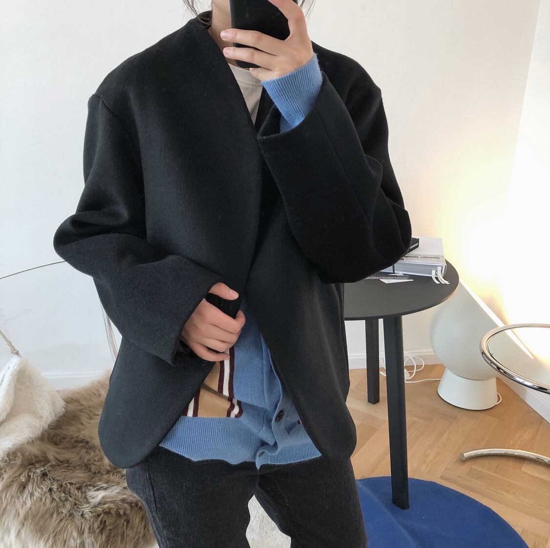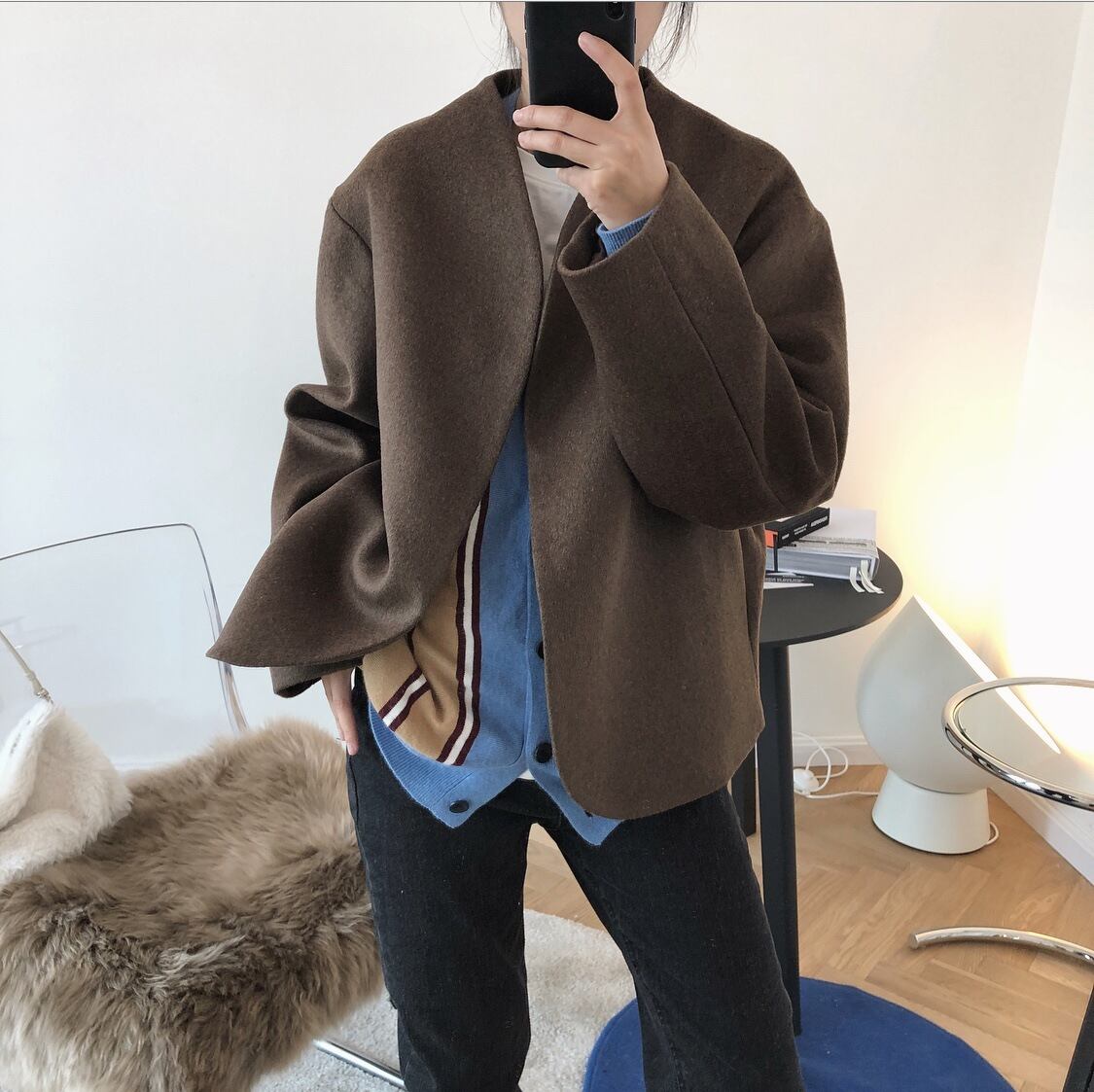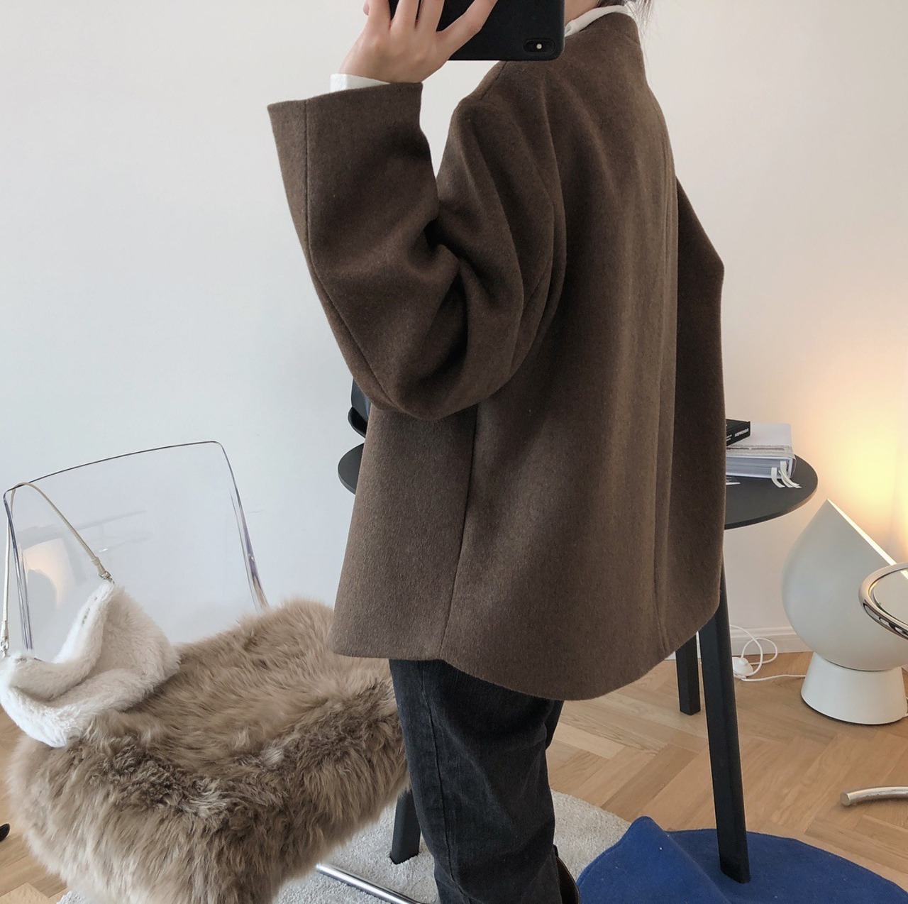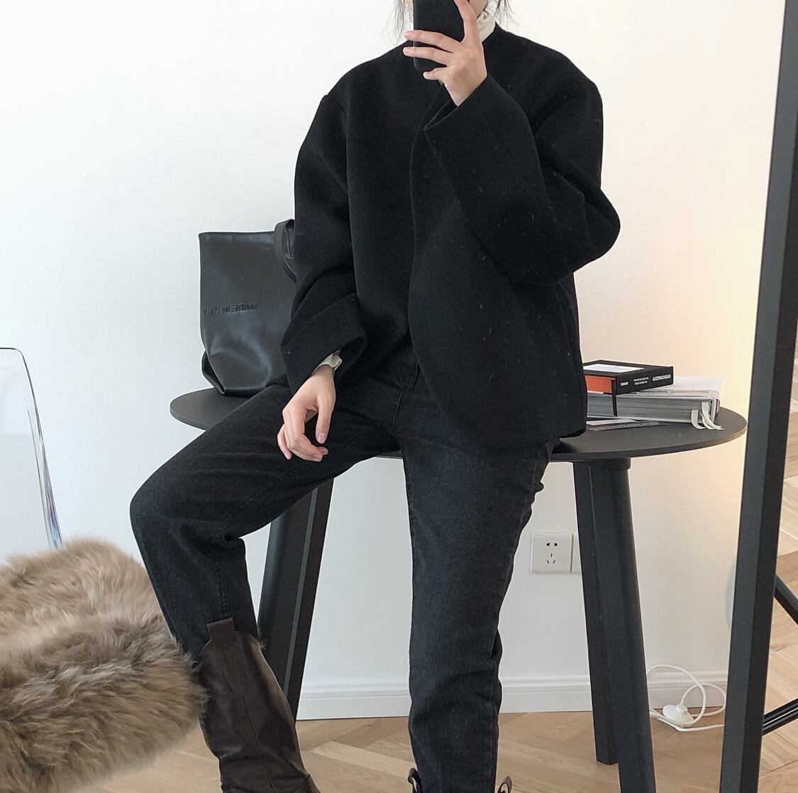 ノーカラーコート レディース アウター 薄手 切り替え ウールタッチ ノーカラー ショート丈 マニッシュ 長袖 韓国風 軽い 軽量 冬服 厚手 アウター 暖かい 大きいサイズ スリム 防寒 10代 20代 30代 40代 レディース オフィス OL 通勤 学生 通学 デート お出かけ 女子会 リゾート 旅行 着回し 普段使い 韓国系 オルチャン ファッション コーデ スタイル モテ 体型カバー S M Lアプリコット ブラック