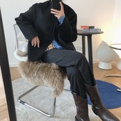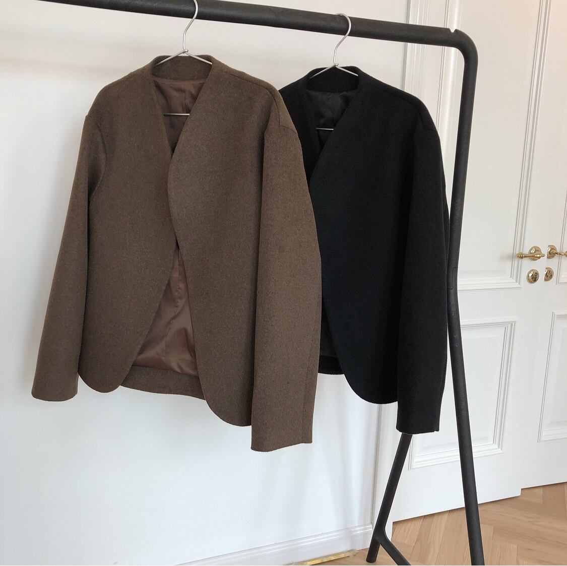 ウールタッチの上品な生地感が大人っぽいノーカラージャケットです。