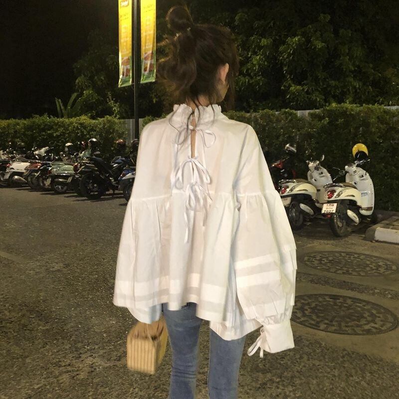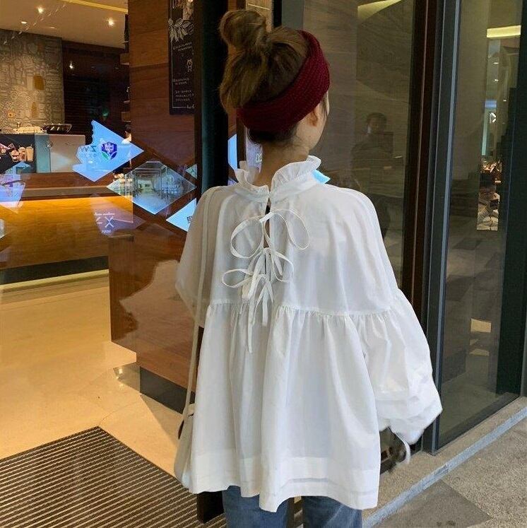 トップス シャツ ブラウス 白シャツ 白トップス 袖あり 長袖 ハイネック スタンドカラー フレア リボン 切り替えデザイン バックシャン バックコンシャス かわいい 大人可愛い きれいめ シンプル カジュアル 大人 上品 おしゃれ お洒落 レトロ 大人可愛い 大人女子 こなれ感 ラフ マニッシュ ラブリー キュート ガーリー ルーズ 個性的 モダン 主役級 存在感 抜け感 無地 春 秋 冬 10代 20代 30代 40代 レディース 女性用 ママ オフィス ビジネス OL 通勤 学生 通学 デート