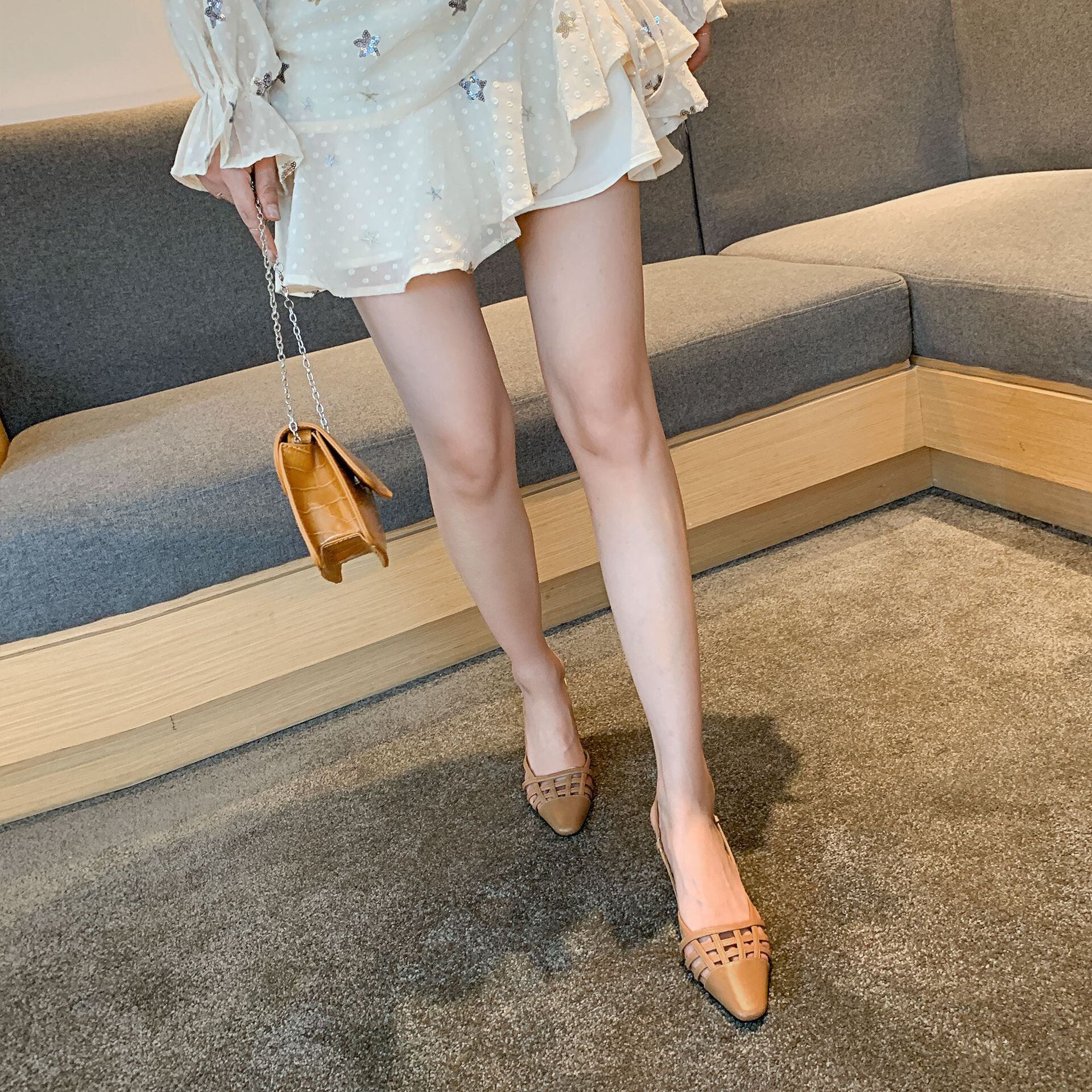 程よい肌見せが叶うメッシュ編みがさわやかな印象のミュールです。