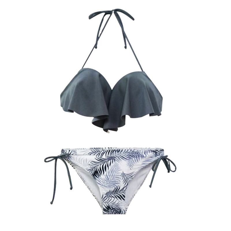 水着 ビキニ スイムウェア レディース ホルターネック パッド付き 紐 レイヤード 谷間魅せ 盛れる 大人可愛い きれいめ セクシー sexy シンプル カジュアル ゴージャス 華やか 大人っぽい 主役級 存在感 ラブリー キュート 個性的 クール スタイリッシュ かっこいい エキゾチック リーフ柄 10代 20代 30代 ママ 夏 海 ビーチ プール リゾート 旅行 スタイルアップ 韓国 高見え インスタ映え M L XL グレー