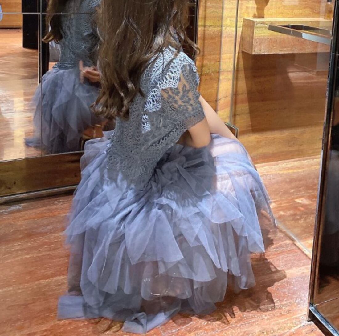 ボリュームたっぷりチュールスカートのロングパーティードレス。