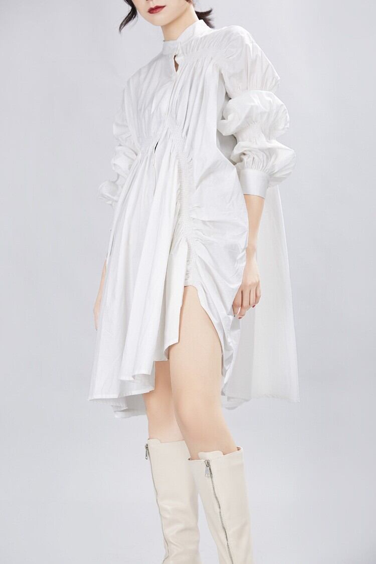 個性的 ワンピース シャツ ブラウス 白シャツ ミニ丈 袖あり 長袖 ボリューム袖 袖コンシャス フレア アシンメトリー 切り替えデザイン プリーツ かわいい 大人可愛い きれいめ シンプル カジュアル 大人 おしゃれ お洒落 レトロ アジアン 大人可愛い 大人女子 こなれ感 マニッシュ 個性的 クール モード系 セクシー エレガント モダン 主役級 存在感 無地 春 秋 冬 10代 20代 30代 40代 レディース 女性用 ママ オフィス ビジネス OL 通勤 学生 通学 デート お出かけ