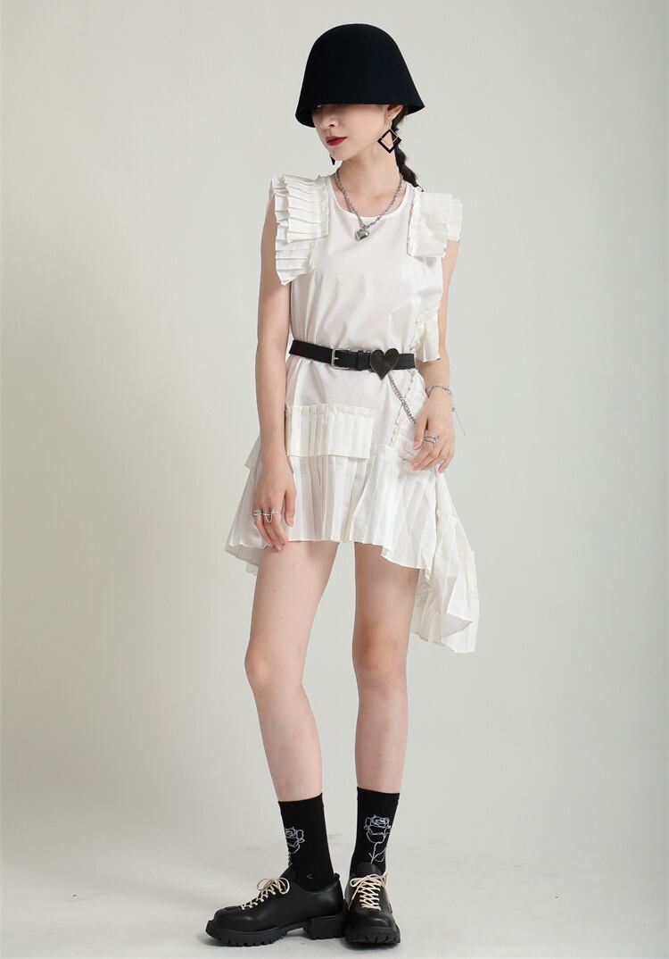 個性的 ワンピース ミニ ミニ丈 ショート ショート丈 膝上 袖なし ノースリーブ ラウンドネック プリーツ フリル かわいい 大人可愛い きれいめ シンプル カジュアル 大人 上品 おしゃれ お洒落 かっこいい レトロ 大人可愛い 大人女子 こなれ感 ラフ マニッシュ 個性的 クール モード系 セクシー エレガント モダン 主役級 存在感 抜け感 フェミニン 爽やか 大人カジュアル オフィスカジュアル オフィカジ 無地 春 夏 10代 20代 30代 40代 レディース 女性用 ママ オフィス ビジネス