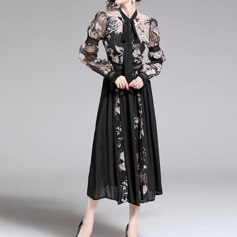ドレス おすすめ おしゃれ お洒落 激安 安い 送料無料 プチプラ パーティードレス お呼ばれ ドレス フォーマル ドレス ロングドレス ラウンジ ドレス イブニング ドレス シースルー ドレス ハイネック ドレス 長袖 Aライン シフォン 韓国 フォーマル 綺麗め 大人上品 シック 同窓会 卒業式 20代 30代 二の腕太い S M L XL 2XL 黒 ブラック 大人カラー モノトーン 秋カラー