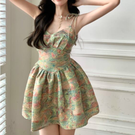 春らしい花柄のミニフレアキャミワンピース。