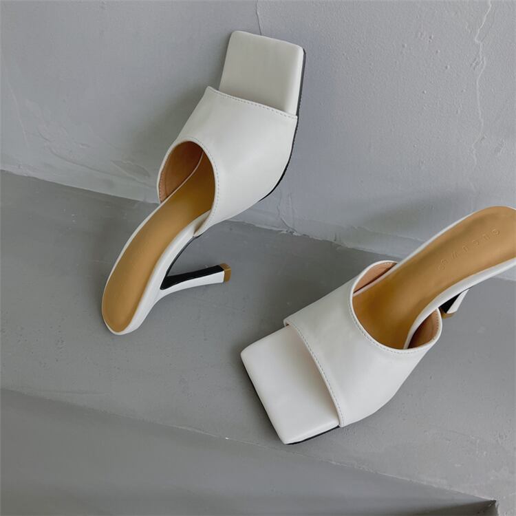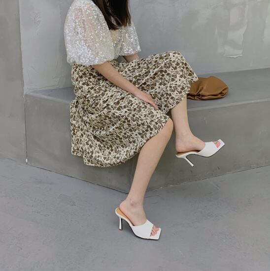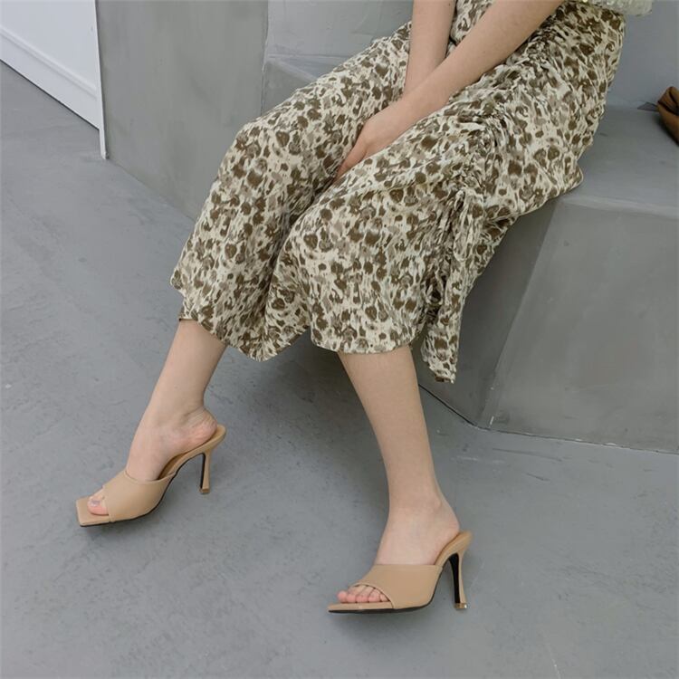 スクエアトゥのオープンカットが大人っぽく夏らしいデザインです。