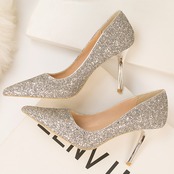 きらきらとゴージャスな印象のラメが目を引く主役級パンプスです。