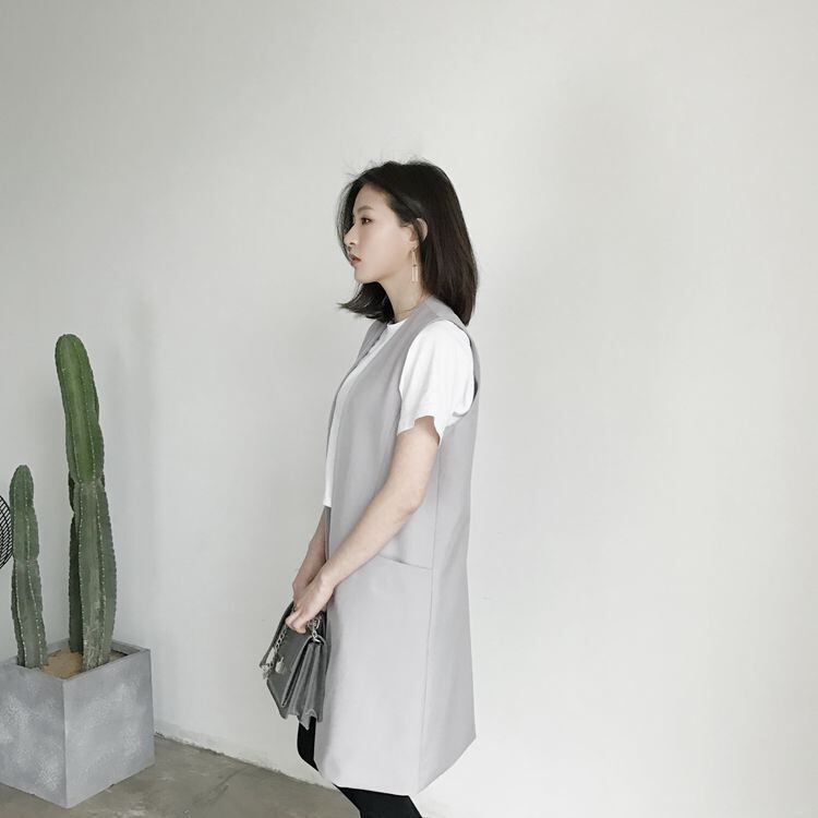 アウター ベスト コート ジレ ロング丈 袖なし ノースリーブ 襟なし ポリエステル かわいい 大人可愛い きれいめ シンプル カジュアル 大人 上品 おしゃれ 大人可愛い 大人女子 ラフ 無地 春 夏 秋 10代 20代 30代 レディース オフィス ビジネス OL 通勤 着回し 普段使い 重ね着 S M L XL 黒 ブラック 灰色 グレー