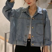 コート アウター ショート クロップ丈 ブルゾン ドロップショルダー デニム Gジャン ヴィンテージ風 切り替え 袖あり 長袖 ポケット付き アウター 羽織り 大人可愛い きれいめ シンプル カジュアル おしゃれ レトロ こなれ感 ラフ エレガント 無地 春 秋 冬 10代 20代 30代 40代 レディース オフィス OL 通勤 学生 通学 デート お出かけ 女子会 リゾート 旅行 着回し 普段使い 韓国系 ファッション コーデ スタイル モテ 体型カバー ブルー