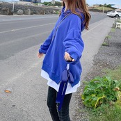 1枚さらっと着るだけで、オシャレ見えする重ね着風のパーカー。