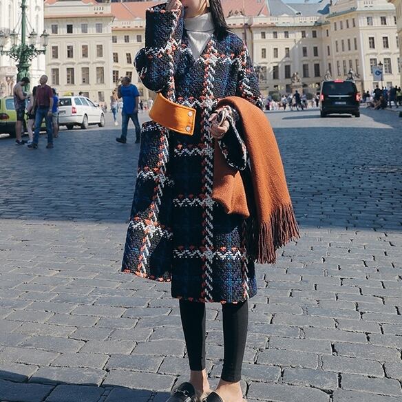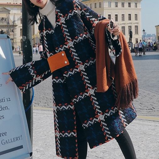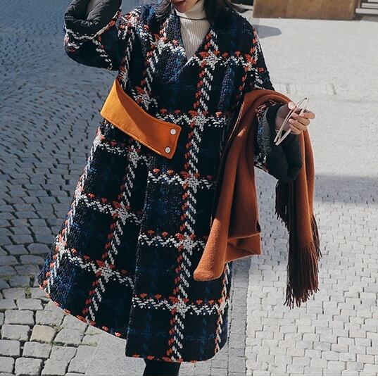コート レディース アウター チェック コクーンシルエット Aライン ポケット装飾 パフスリーブ 裏地 韓国風 幾何学模様 ロング丈 軽い 軽量 フード付き 冬服 厚手 アウター 暖かい 大きいサイズ スリム 防寒 10代 20代 30代 40代 レディース オフィス OL 通勤 学生 通学 デート お出かけ 女子会 リゾート 旅行 着回し 普段使い 韓国系 オルチャン ファッション コーデ スタイル モテ 体型カバー M L XL 2XL ベージュ カーキ ブルー ブラック