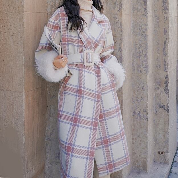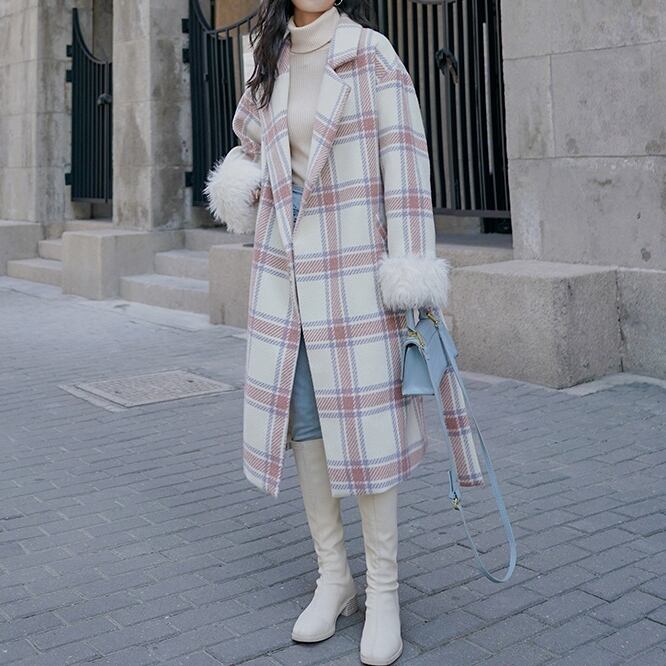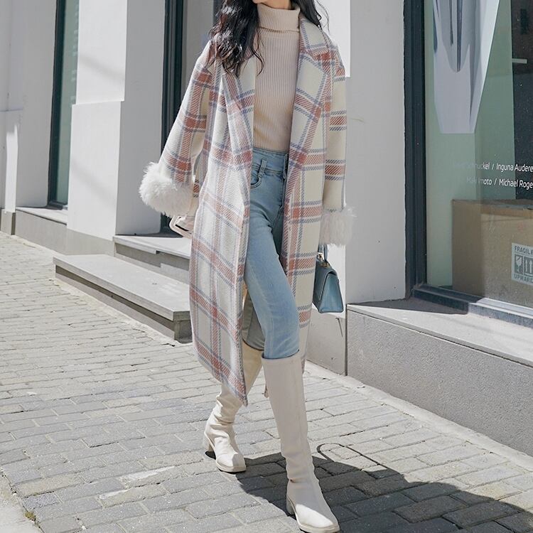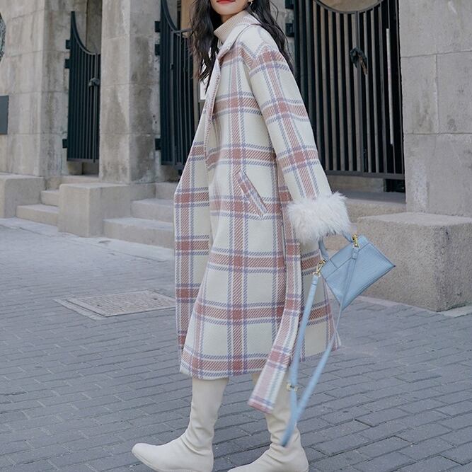 コート レディース アウター チェック コクーンシルエット ドロップショルダー フェイクファー Aライン パフスリーブ 裏地 韓国風 幾何学模様 ロング丈 軽い 軽量 フード付き 冬服 厚手 アウター 暖かい 大きいサイズ スリム 防寒 10代 20代 30代 40代 レディース オフィス OL 通勤 学生 通学 デート お出かけ 女子会 リゾート 旅行 着回し 普段使い 韓国系 オルチャン ファッション コーデ スタイル モテ 体型カバー M L XL 2XL ベージュ カーキ ブルー ブラック