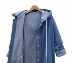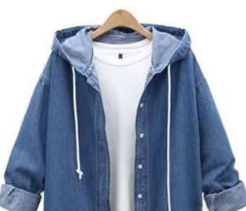 羽織るだけでこなれた雰囲気になれるフード付きデニム風パーカー。