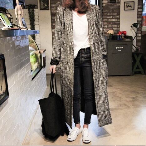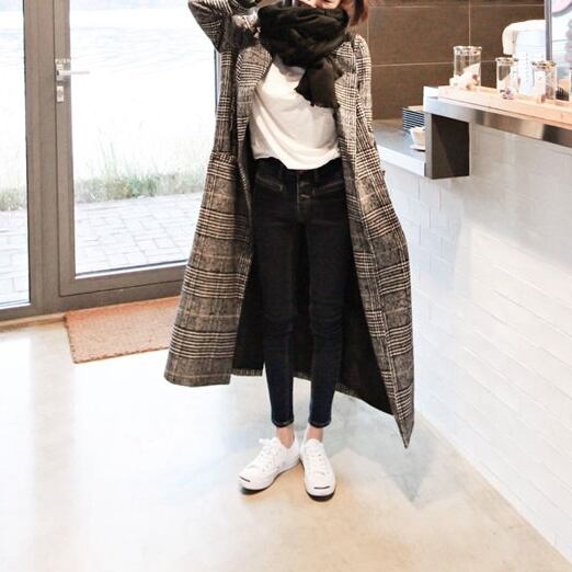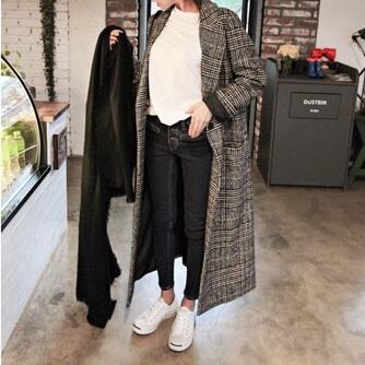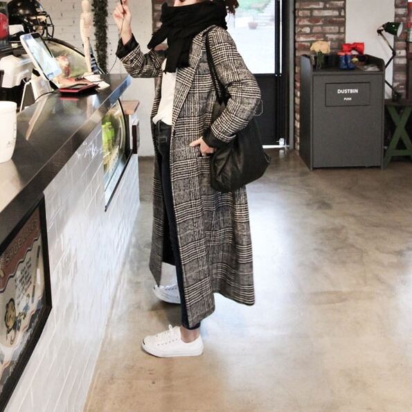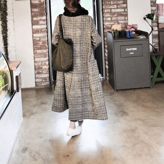 ざっくりバックスリットで歩きやすいチェック柄のロングコートです。