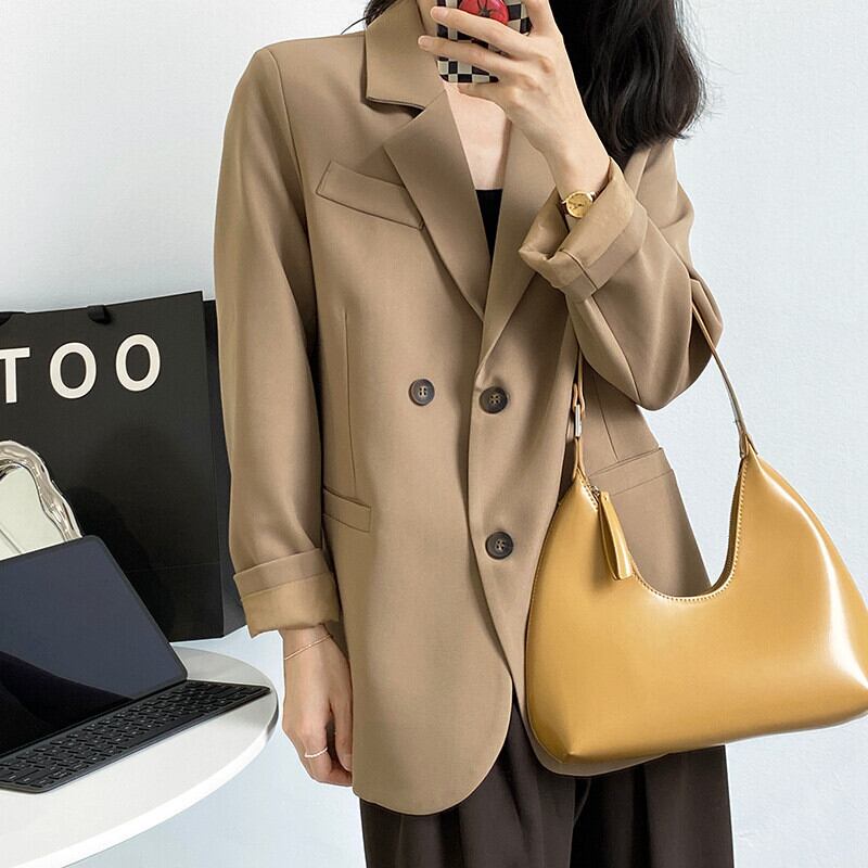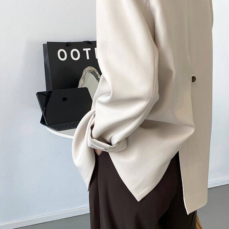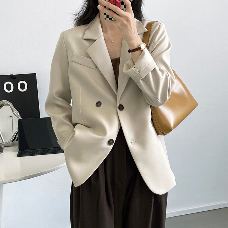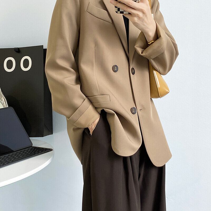 アウター ジャケット 上着 スーツ ミドル丈 袖あり 長袖 バックスリット ダブルブレスト きれいめ カジュアル 大人 上品 おしゃれ レトロ 大人女子 エレガント 無地 春 秋 10代 20代 30代 40代 レディース オフィス OL 通勤 デート お出かけ 女子会 休日 着回し 普段使い 韓国系 オルチャン ファッション コーデ スタイル 暖かい モテ M L XL 黒 ブラック 赤 茶色 ブラウン ベージュ
