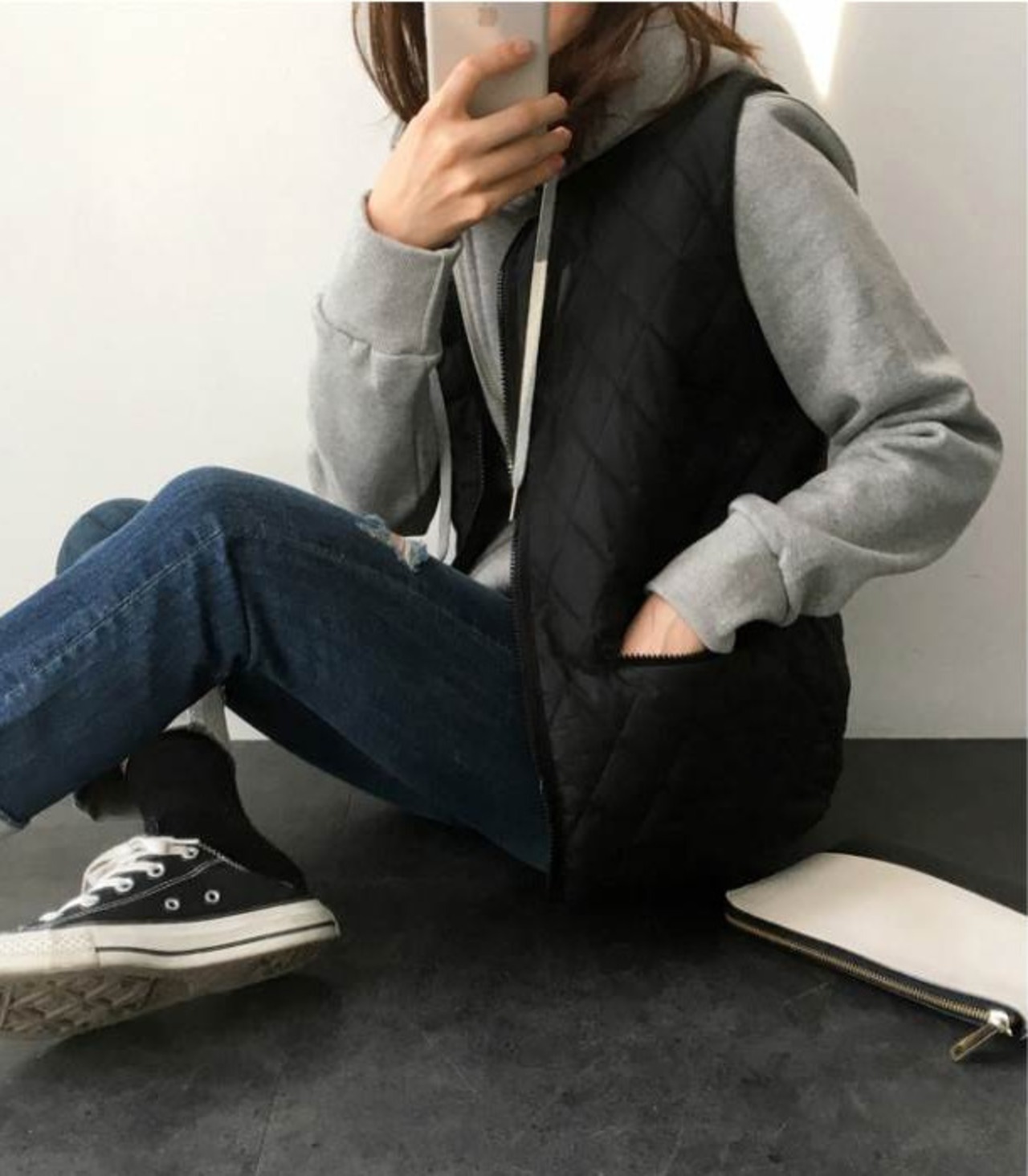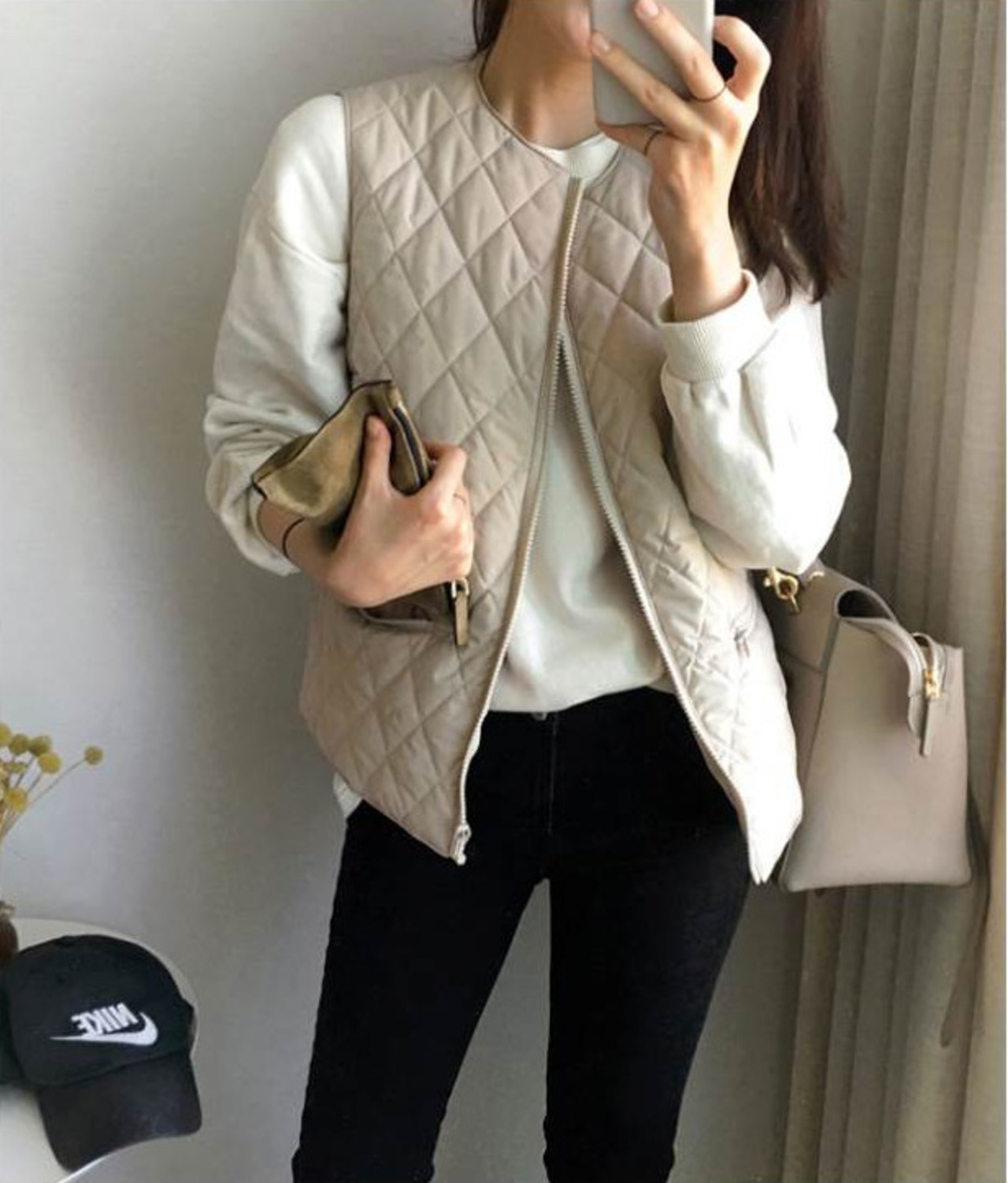すっきりミニマルなキルティング仕立てが可愛い中綿ベストです。