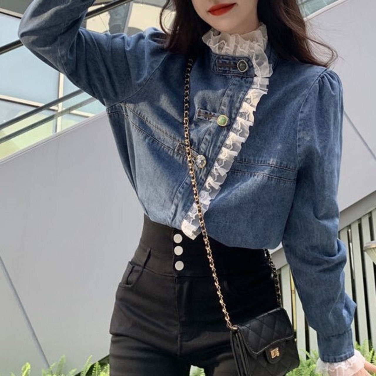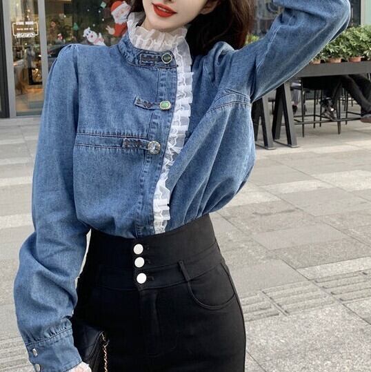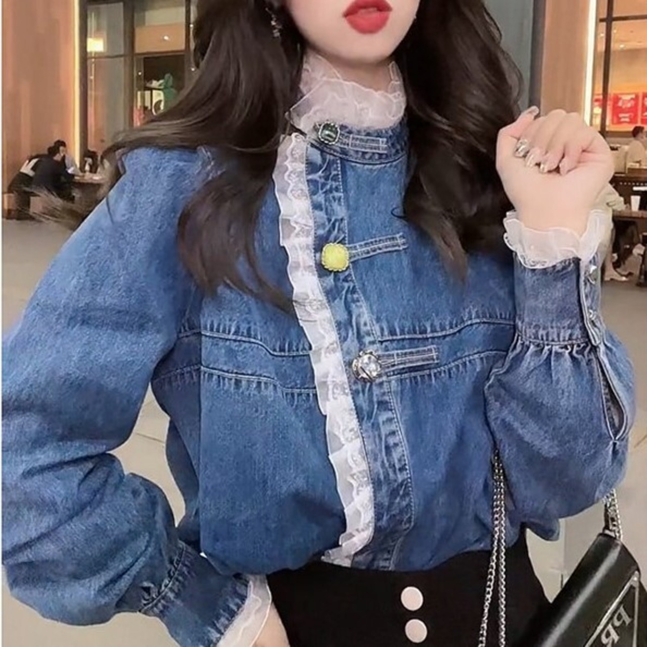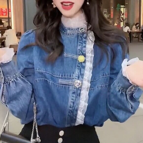 アウター コート おすすめ 人気 流行り トレンド おしゃれ お洒落 激安 安い 送料無料 プチプラ アウター ジャケット ショート ジャケット デニム ジャケット カーボーイシャツ ショート丈 ボタン 長袖 立襟 ステッチ デニム レース アメカジ 可愛い かわいい きれいめ おしゃれ レトロ 春 スプリング 春先 秋 オータム カジュアル お出かけ デート 2022 レディース 女性用 ママ 20代 30代 S M L 青 ブルー