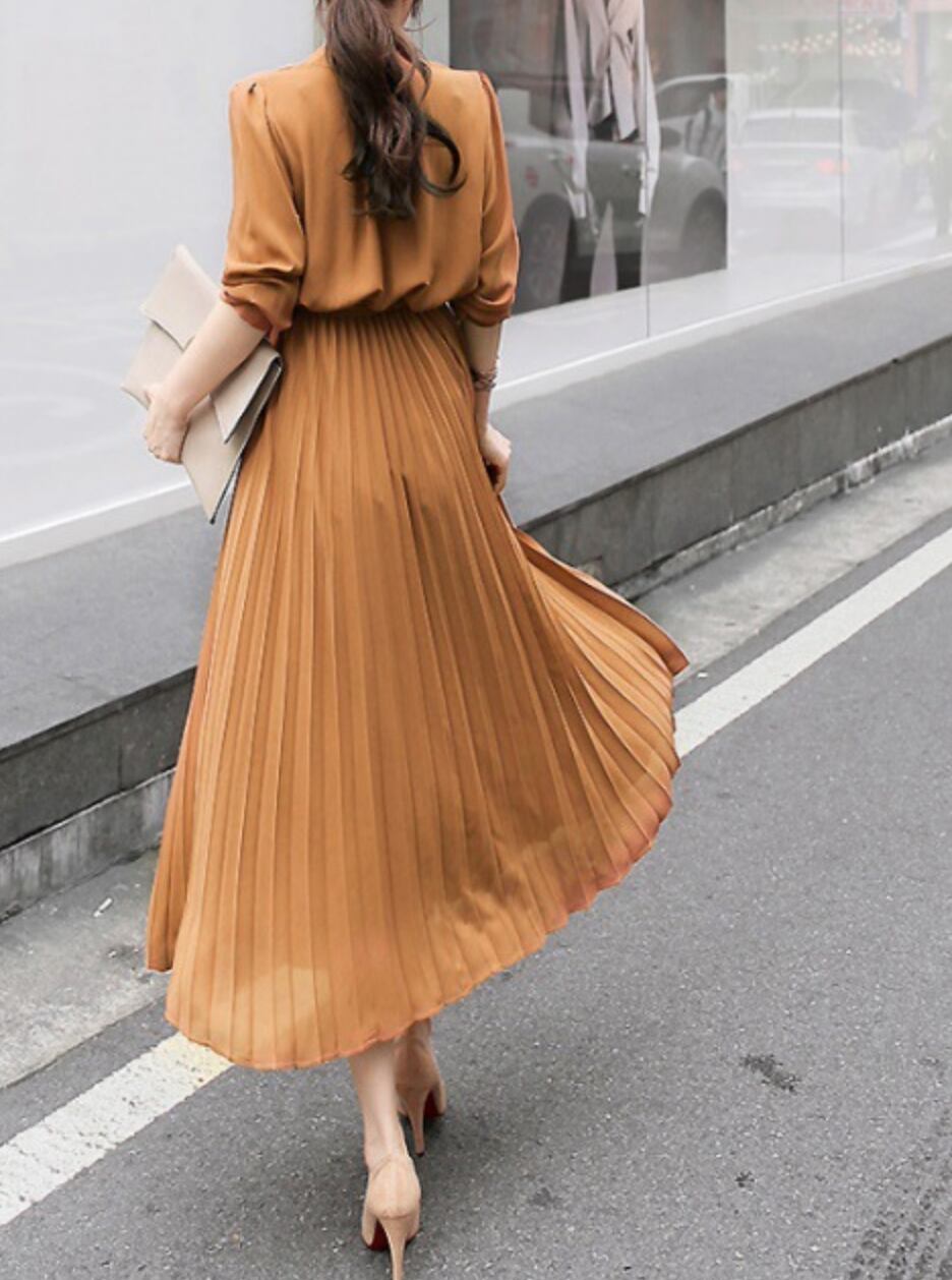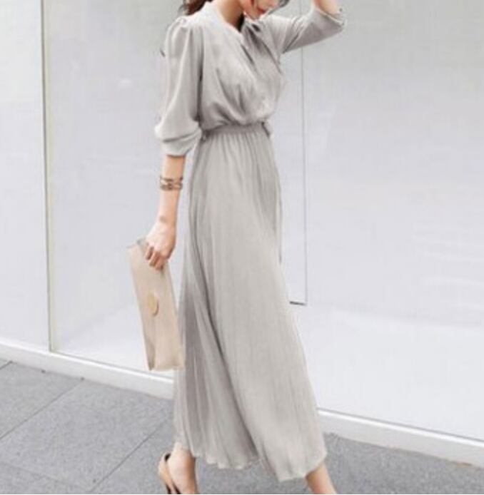 ドレス おすすめ おしゃれ お洒落 激安 安い 送料無料 プチプラ フォーマル ドレス ロングドレス ラウンジ ドレス カジュアル ドレス ゲスト ドレス セミ フォーマル ワンピース 長袖 Aライン ふんわり プリーツ 韓国 フォーマル カジュアル 綺麗め 大人上品 シック 同窓会 卒業式 20代 30代 S M L XL 黒 ブラック 灰色 グレー 紺 ネイビー 茶色 ブラウン 大人カラー モノトーン 秋カラー