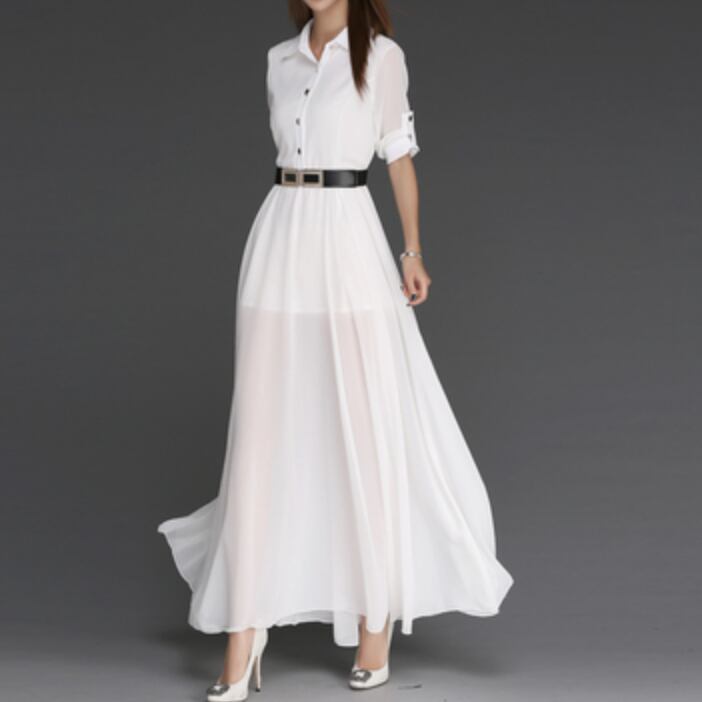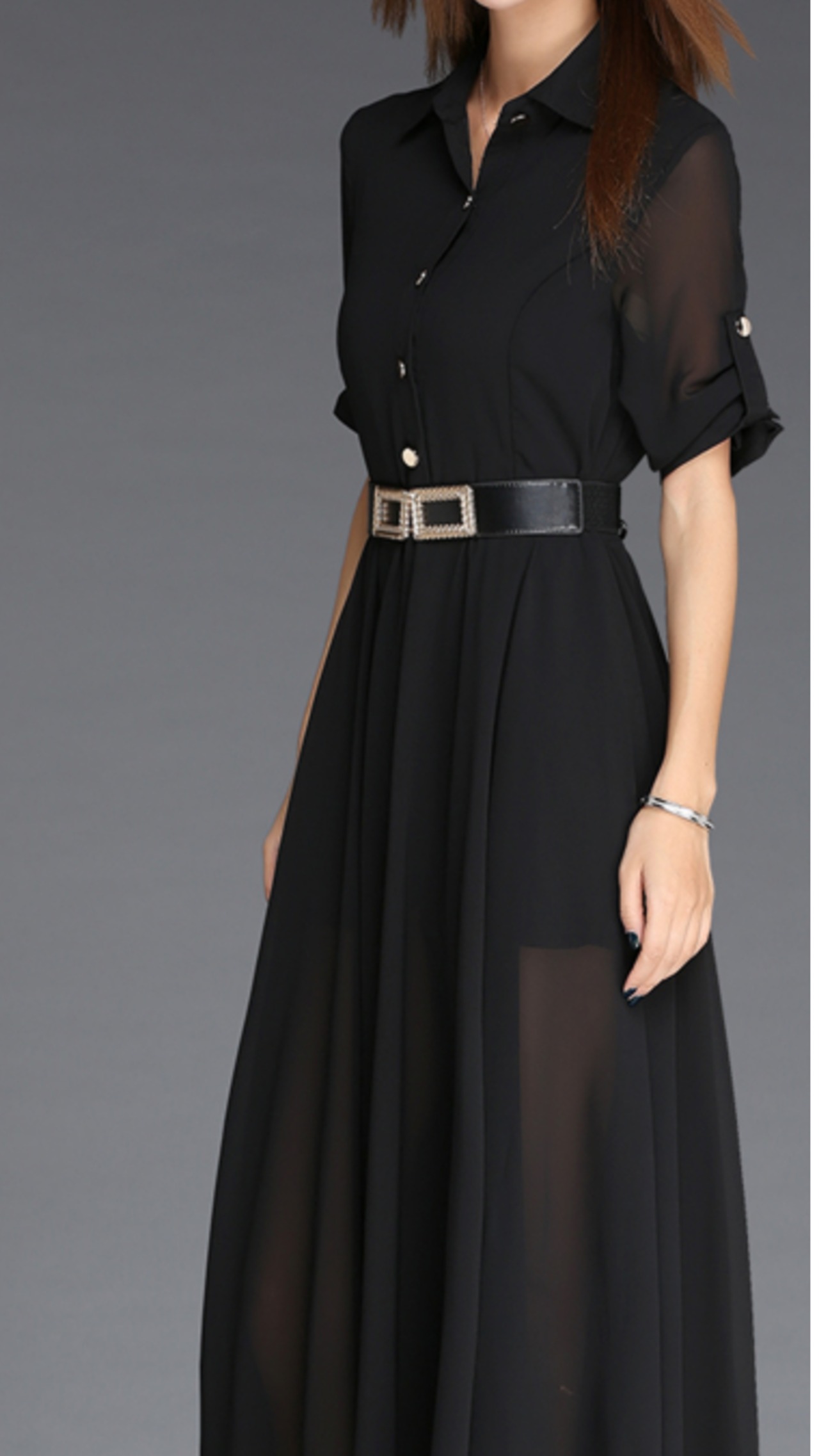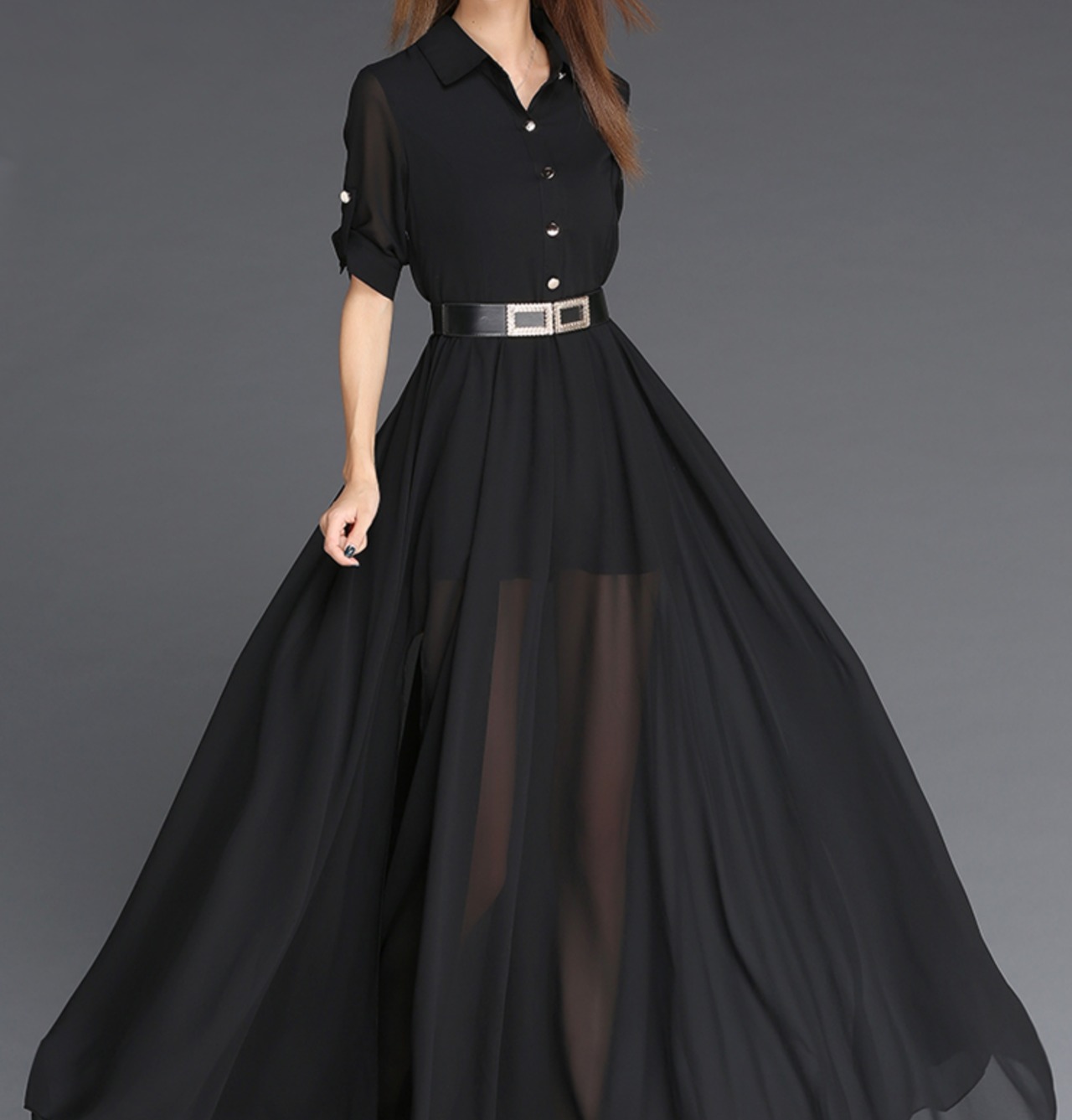 ふんわりシフォン生地のマキシシャツフォーマルドレス。