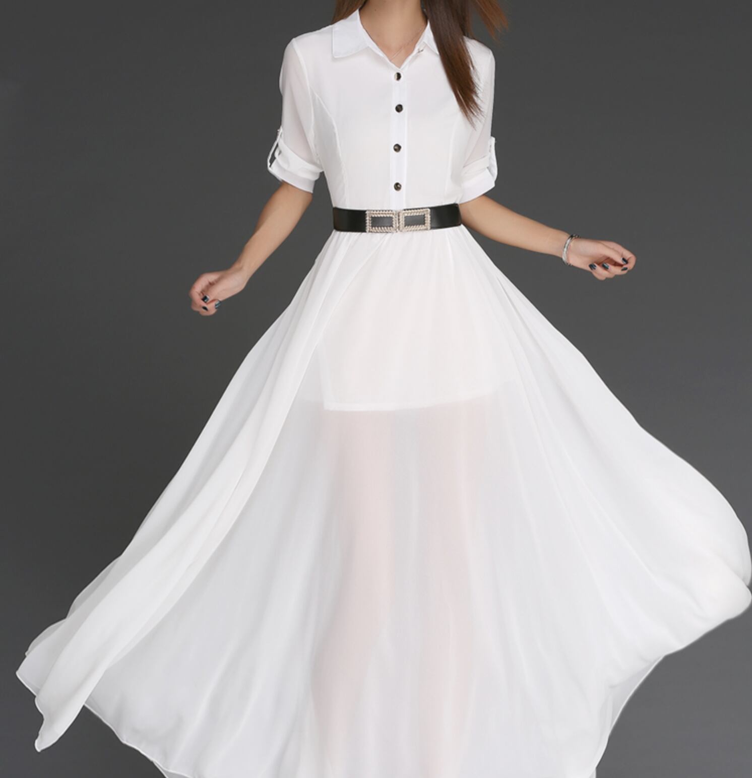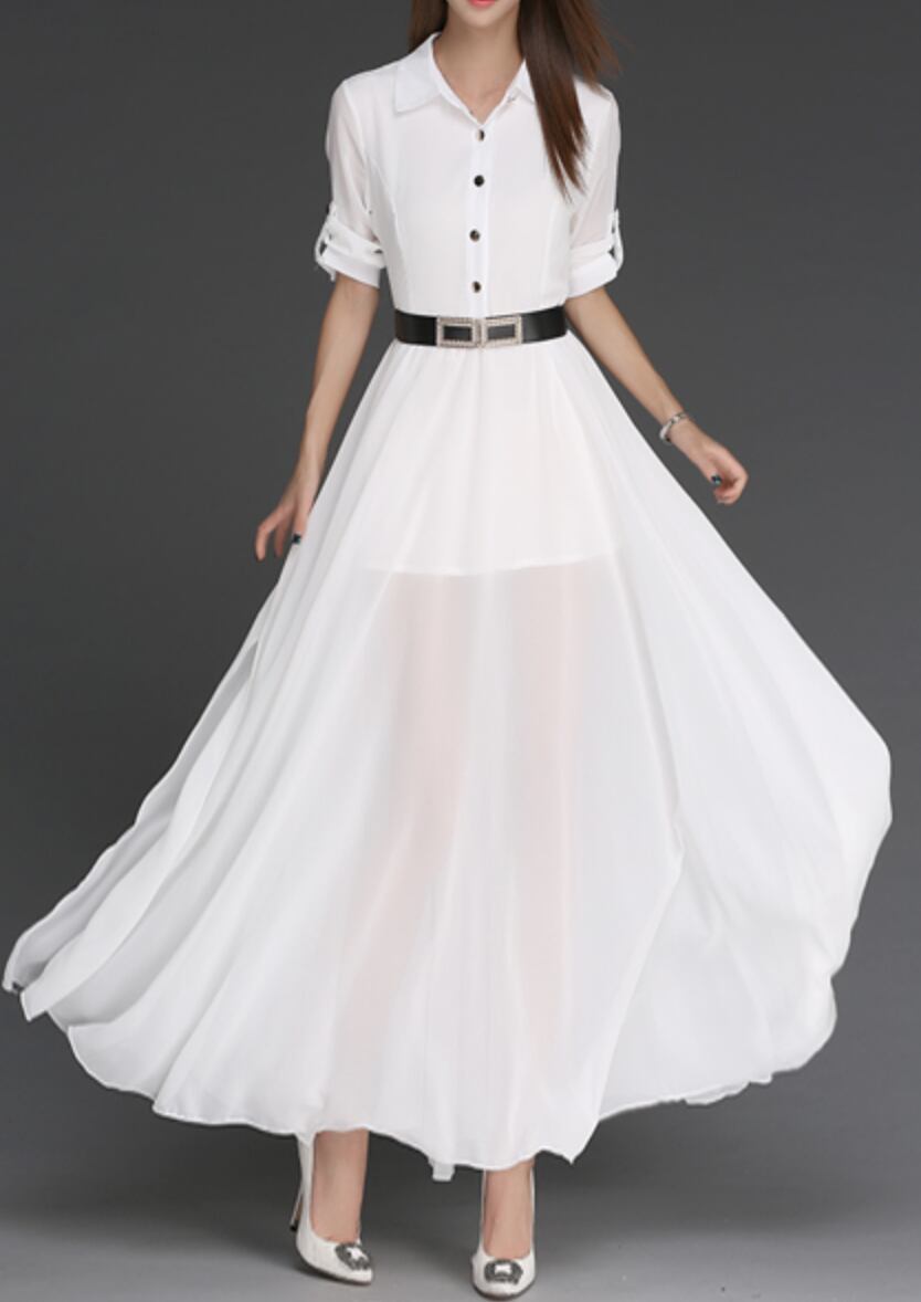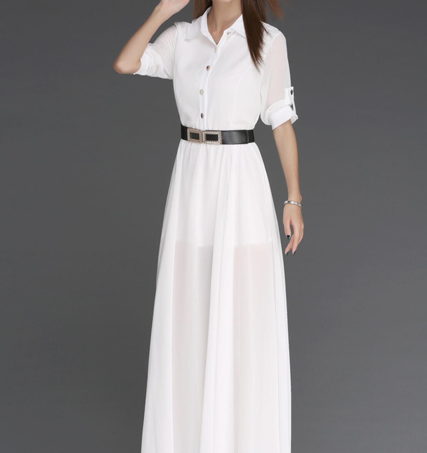 ふんわりシフォン生地のマキシシャツフォーマルドレス。