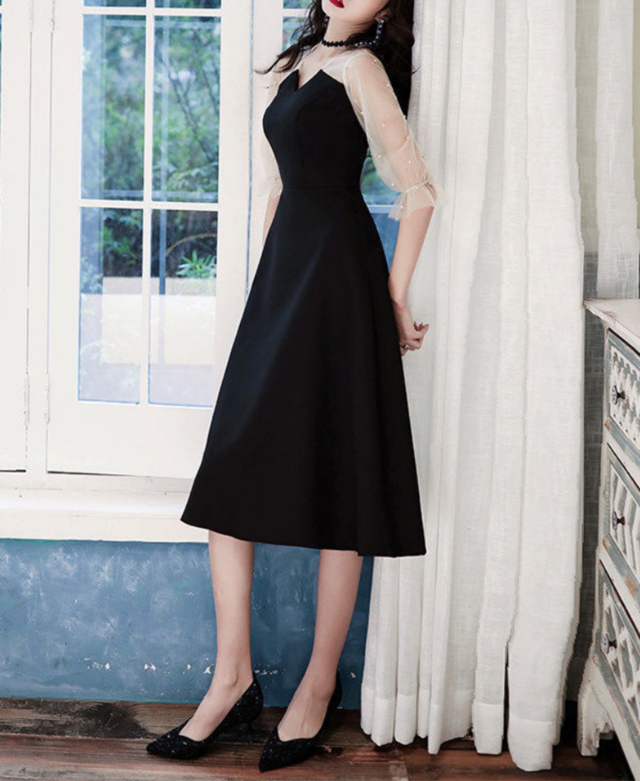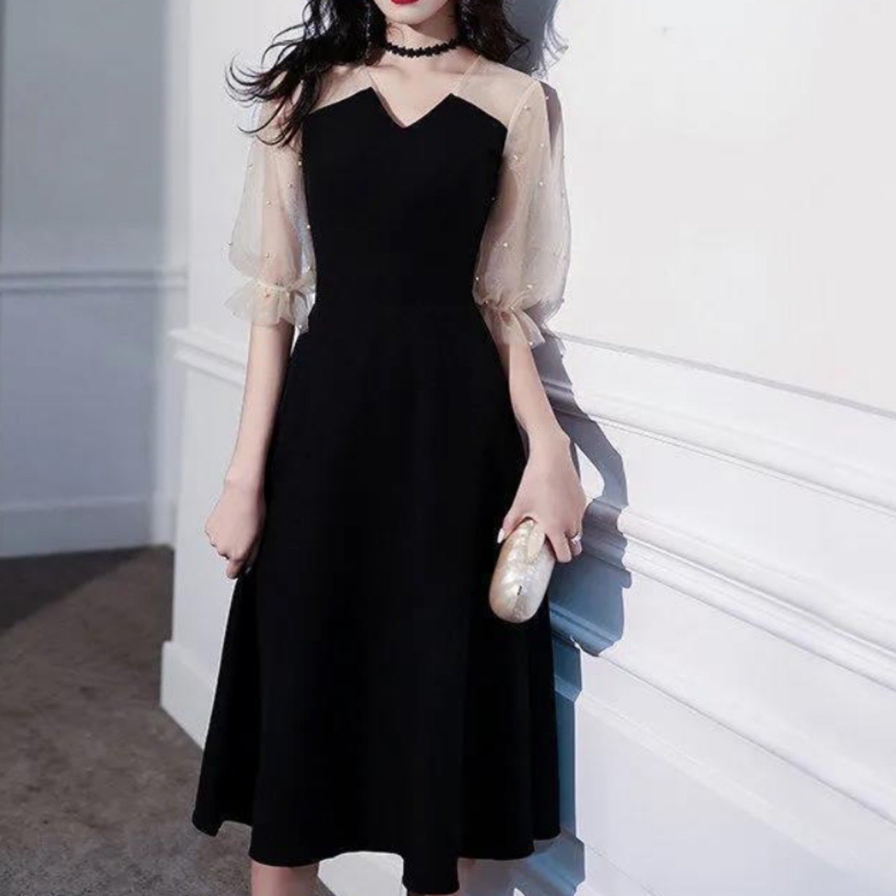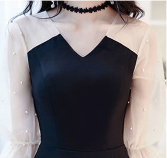ドレス おすすめ おしゃれ お洒落 激安 安い 送料無料 プチプラ パーティードレス お呼ばれ ドレス フォーマル ドレス ロングドレス ラウンジ ドレス イブニング ドレス シースルー ドレス ゲスト ドレス 長袖 Aライン キラキラ Vネック パフスリーブ 膝丈 ボリュームスリーブ ふんわり 韓国 フォーマル 綺麗め 大人上品 シック 同窓会 卒業式 クリスマス 20代 30代 S M L XL 黒 ブラック 大人カラー バイカラー モノトーン