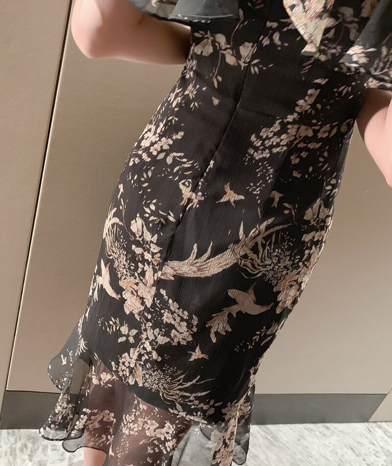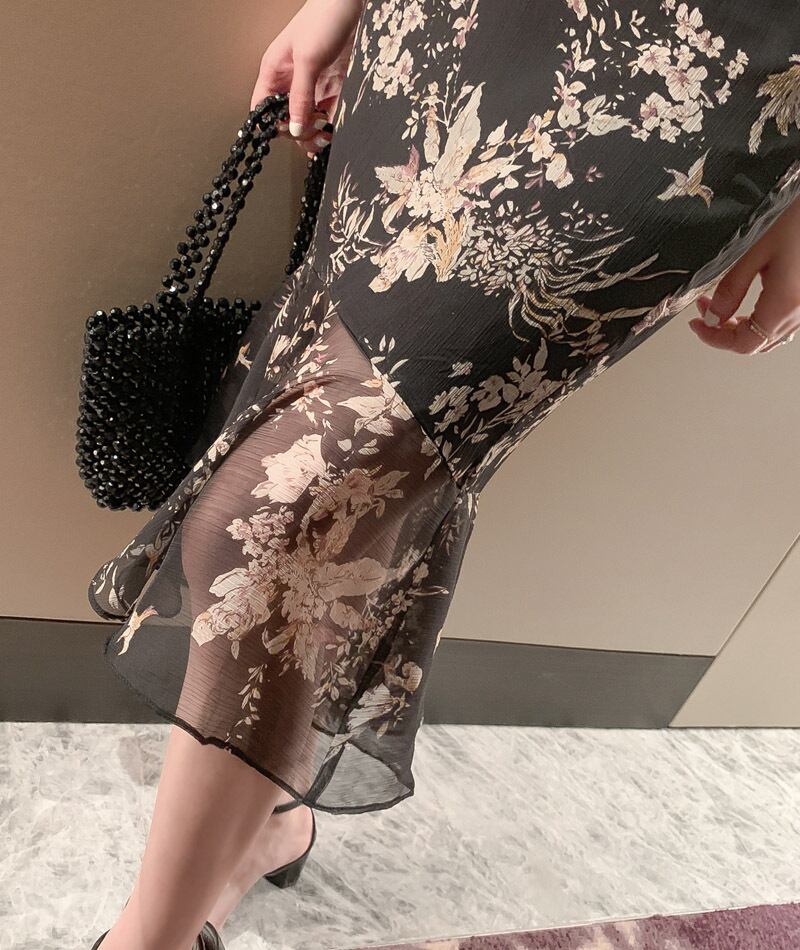 ふんわりシフォン生地とフローラルなプリントがお洒落でフェミニンな一枚。