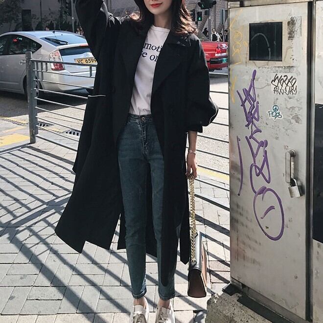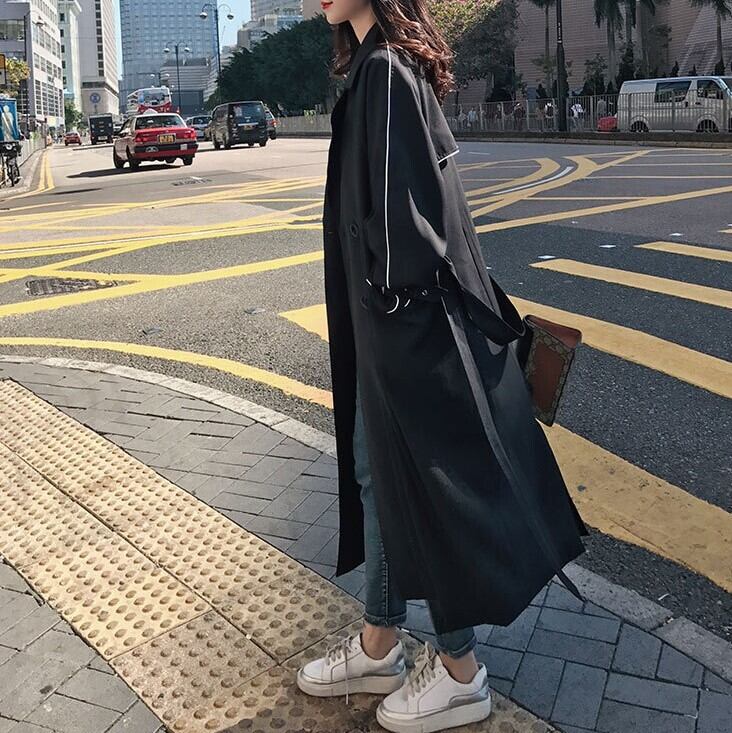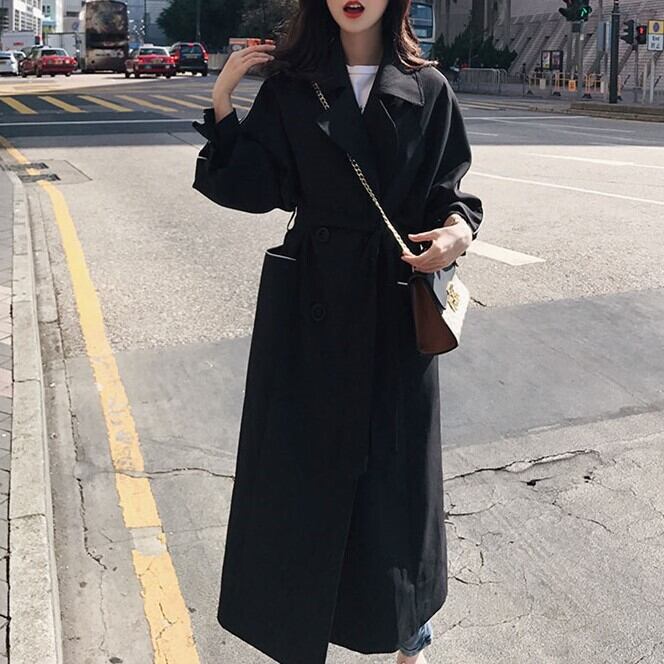 トレンチ コート アウター ロング コート スプリング コート ロング丈 ボタン 長袖 ベルト付き 襟あり ルーズ 韓国 大人 おしゃれ かっこいい 春 スプリング 春先 秋 オータム カジュアル お出かけ 通勤 デート 2022 レディース 女性用 ママ 20代 30代 S M L XL 2XL 3XL ゆったり ゆる サイズ 黒 ブラック 大人カラー 秋カラー